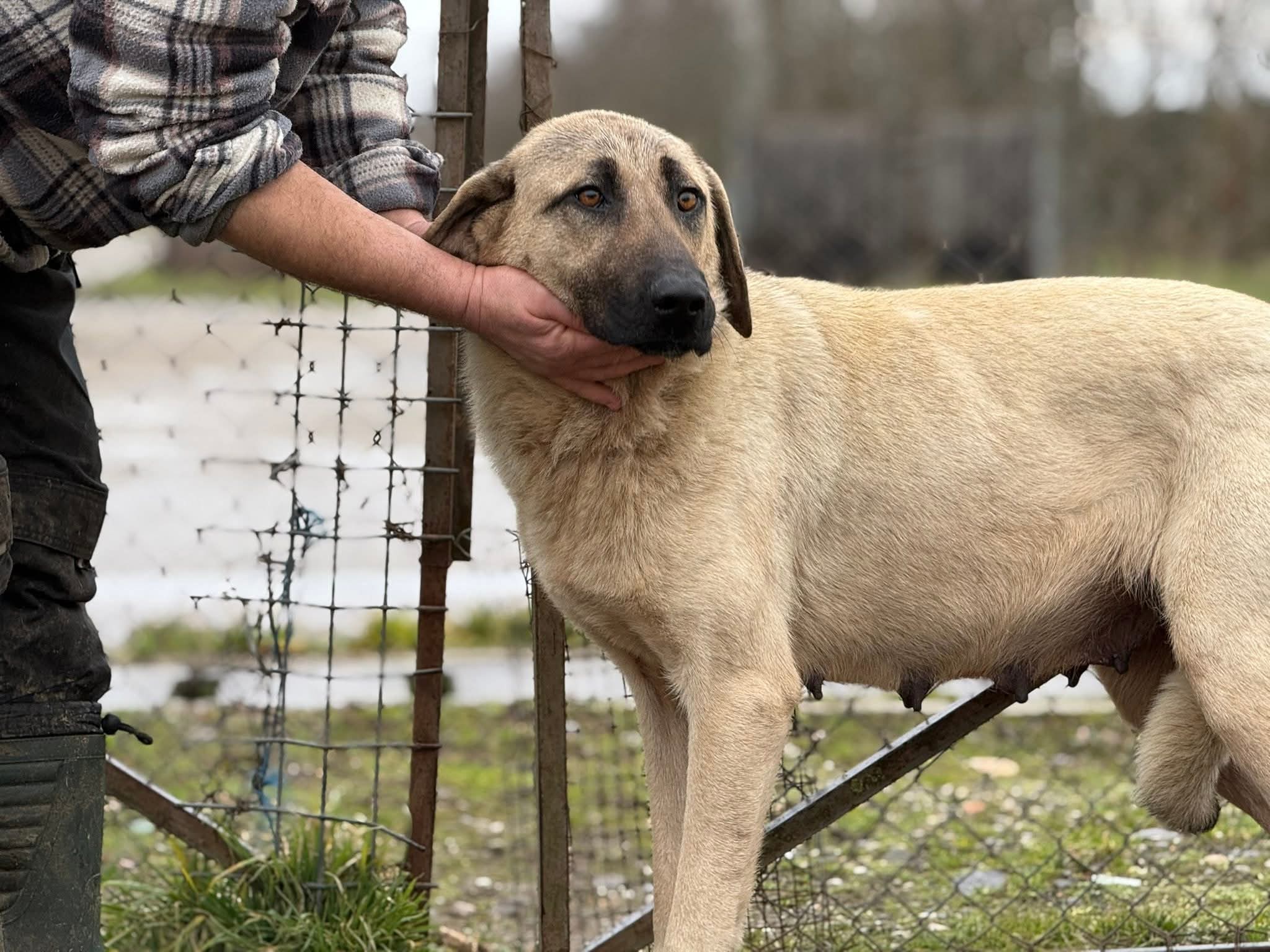 Ronja ist die Mutter von Püpi, Yiska und Nima – und diejenige, die das Elend am längsten ertragen musste. Ein Schäfer hielt sie im tiefsten Winter an der Kette, ohne richtigen Schutz, gemeinsam mit 12 Welpen. Das Einzige, was ihnen blieb, war eine kleine, modrige Holzhütte. Kälte, Nässe, Hunger und der ständige Druck, ihre Welpen schützen und ernähren zu müssen, haben tiefe Spuren in ihr hinterlassen. Als sie ins Shelter nach Busag kam, war sie stark abgemagert und so erschöpft, dass sie ihre Babys kaum noch versorgen konnte. Von den 12 Welpen konnten nur drei gerettet werden – Püpi, Yiska und Nima.