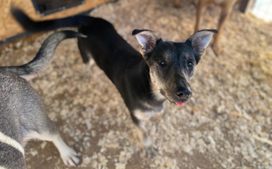 Rosabella hat kurzes, schwarzes Fell mit hellen Abzeichen und wunderschöne, große Stehohren. Sie hat Probleme am rechten Auge, es sieht kleiner aus und gereizt. Vielleicht handelt es sich um eine alte Verletzung. Rosabella wird bald medizinisch untersucht und die Ursache und eventuell notwendige Behandlungsmethoden abgeklärt.