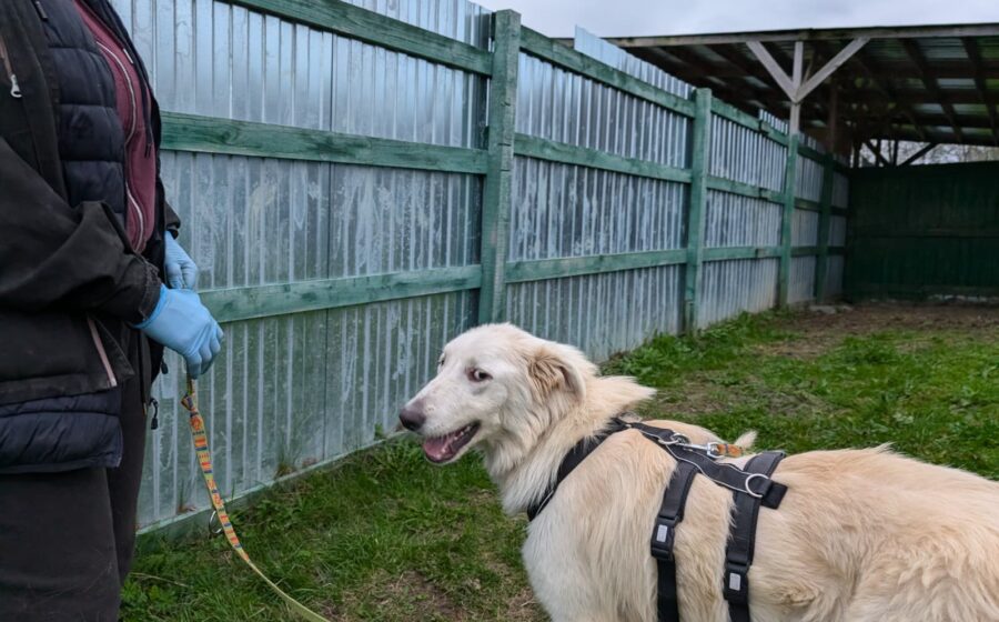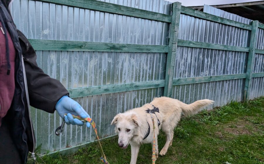 Rose lässt sich problemlos das Geschirr anlegen und macht schon erste Versuche, an der Leine zu laufen. Selbstverständlich wird sie dafür noch Training brauchen, denn zuweilen zieht sie – nicht aus Ungehorsam, sondern aus purer Begeisterung, weil es so viel zu entdecken gibt. Auch das restliche Hunde-Einmaleins und das Leben im Haus muss sie noch lernen. Vielleicht wäre auch der Besuch einer positiv arbeitenden Hundeschule eine sinnvolle Unterstützung im Alltag, zumal die junge Rose sowohl viel körperliche als auch geistige Auslastung braucht.
