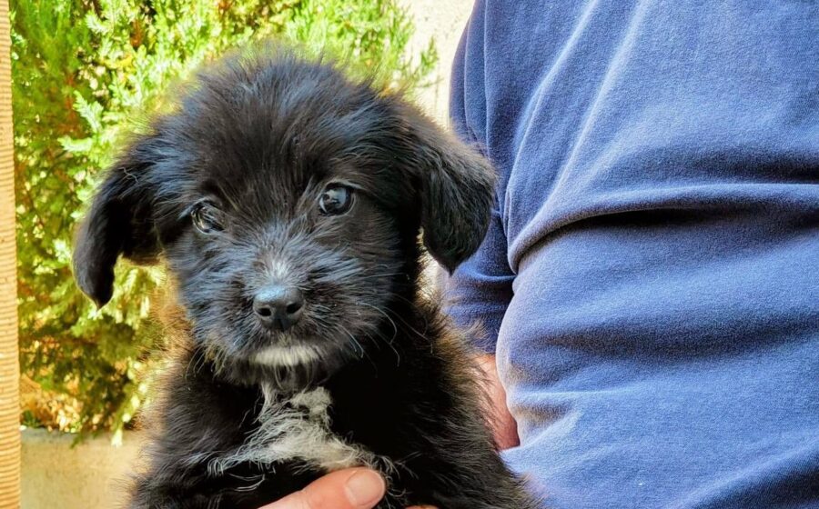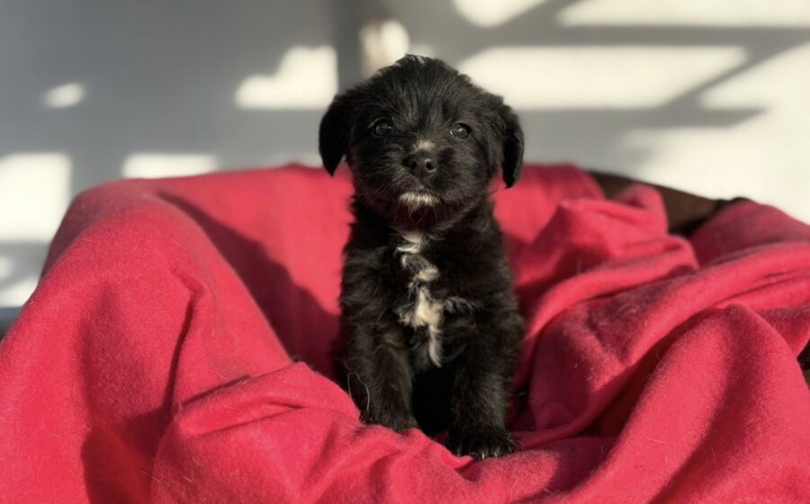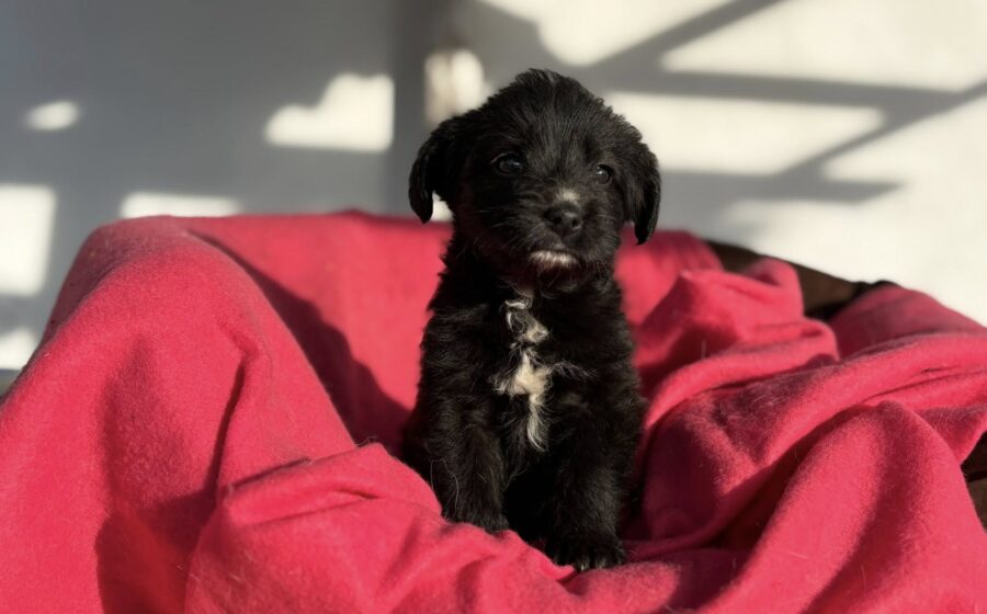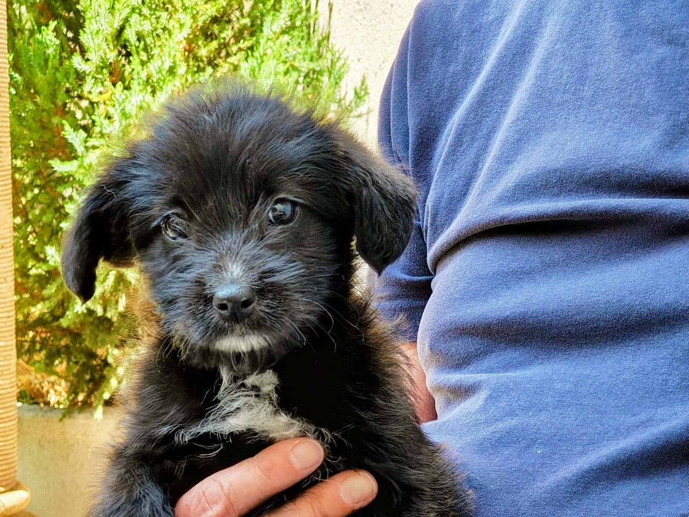 Ruby gehört zu der Sorte Hund, bei der Herzen schmelzen. Mit ihrem schwarzen Wuschelfell, dem weißen Lätzchen, dem kleinen Punkt auf der Nase und dem Blick „Ich war’s nicht, ehrlich!“ hat sie beste Voraussetzungen, in Windeseile zum Mittelpunkt deiner Welt zu werden.