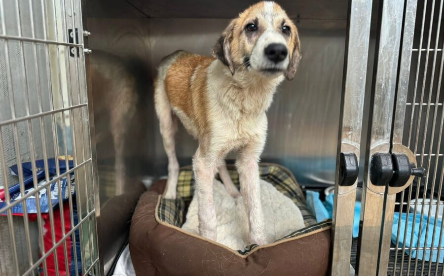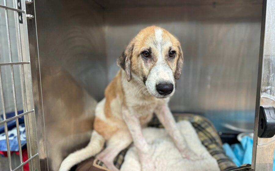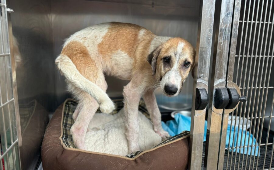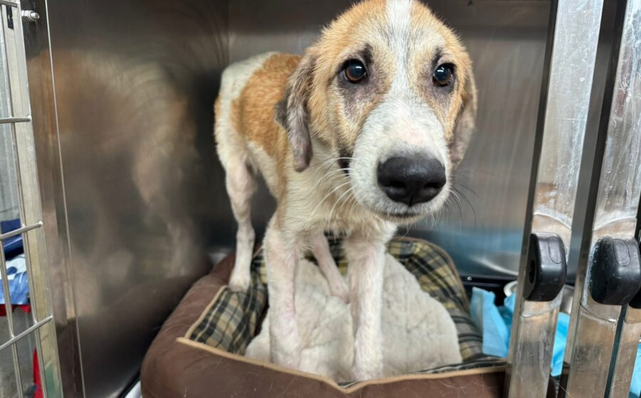 Momentan gibt Sally noch ein trauriges Bild ab. Ihr kurzes Fell ist dünn und etwas durchscheinend und an manchen Stellen ausgefallen. Man kann Sallys Knochen unter der Haut sehen, so dünn ist sie noch immer. Aber die tapfere Hündin ist schon auf dem Weg der Besserung, das Fell muss nur noch nachwachsen und bei guter Pflege, Ruhe und gesundem Futter wird sie hoffentlich auch schnell wieder zuzunehmen, so dass sie sich in einigen Wochen zu einer fröhlichen weiß-braun gefleckten Schönheit entwickeln wird.