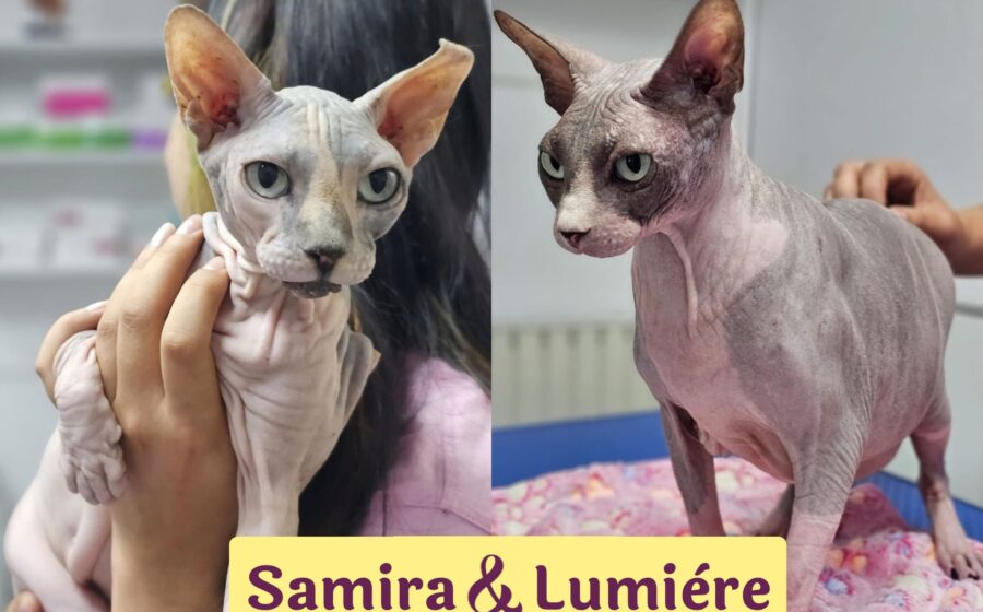 Das Duo der Sphynx-Katzen Samira und Lumière benötigt aufgrund ihrer Rasse besondere Pflege. Deshalb wünschen sie sich in ihrem neuen Zuhause eine Familie, die dies umsetzen kann. Idealerweise konnten bisher Erfahrungen mit Sphynx-Katzen gesammelt werden.