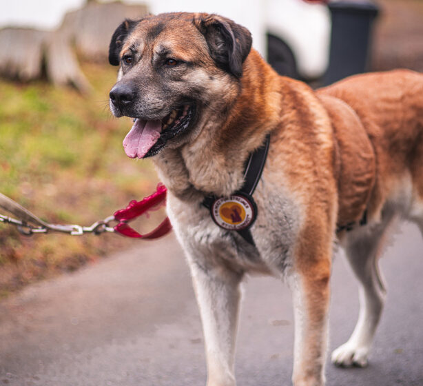 Mit seinen rund 65 cm Schulterhöhe und ca. 35 kg ist Sammi ein imposanter Mischling. Welche Rassen in ihm stecken, lässt sich kaum sagen – möglich ist, dass Hüte- oder Herdenschutzhund-Gene beteiligt sind. Wer ihn adoptieren möchte, sollte bereit sein, sich mit den Besonderheiten dieser Hunde auseinanderzusetzen: Sie denken selbständig, haben ein großes Herz fürs Beschützen und brauchen Menschen, die sie wirklich verstehen und sicher führen.