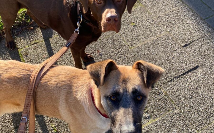 Draußen läuft Sandra bereits vorbildlich an der Leine. Sie bringt einen deutlich ausgeprägten Jagdtrieb mit – Nasenarbeit oder Fährtenlesen würden ihr sicher große Freude bereiten. Gegenüber äußeren Reizen zeigt sie sich noch unsicher: In neuen Situationen setzt sie sich hin, beobachtet aufmerksam oder sucht Schutz hinter ihrem Menschen. Eine eher ländliche, ruhige Umgebung wäre daher ideal für sie.
