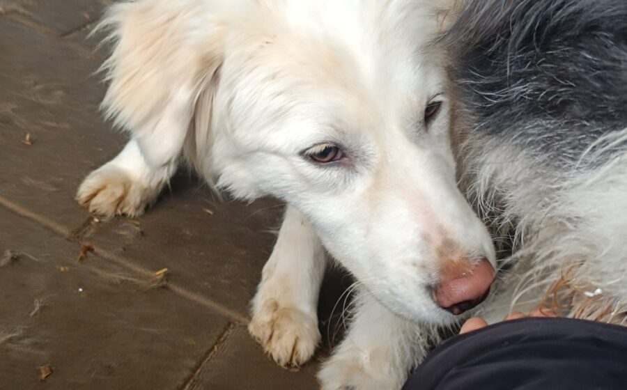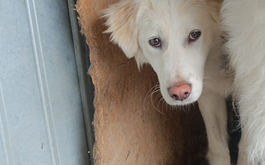 Sandy ist anfangs noch vorsichtig und zurückhaltend. Außerhalb ihres Kennels zeigt sie bereits Mut: Sie traut sich ein Stück aus ihrer Hütte, um ein bisschen näher zu kommen, bleibt aber noch vorsichtig. Streicheln lässt sie sich aktuell noch nicht – hat man jedoch Leckerlis wie Würstchen dabei, kommt sie mutig, um sie aus der Hand zu nehmen. Sandy braucht einfach Zeit, um zu verstehen, dass ihr niemand etwas Böses tun wird.