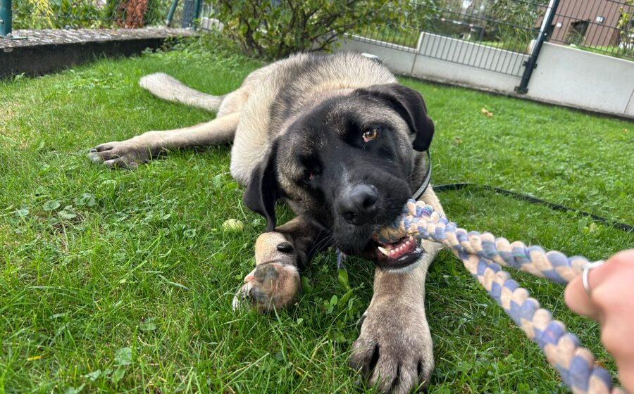 Sanga ist vermutlich ein Kangal-Mix. Wir können nicht ausschließen, dass Sanga Herdenschutzeigenschaften mitbringt, wenn er sich eingelebt hat, bzw. wenn er ausgewachsen ist. Daher suchen wir für ihn ein Zuhause, das bereits Erfahrungen mit diesen Eigenschaften gemacht hat oder dazu bereit ist, sich mit diesen auseinander zu setzen und vor allem die optimalen Bedingungen mitbringt. Sanga sucht ein ländliches Zuhause mit Garten. Und eher wenig Besuch oder wechselnden Personen. Herdenschutzhunde bringen tolle Eigenschaften mit. Menschen, die bereits Erfahrung mit Herdenschutzhunden gemacht haben, wollen keine anderen Rassen mehr, da sie trotz ihres Dickschädels sehr treue und loyale Begleiter sind.
