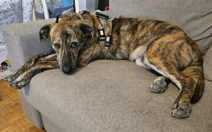 Tiago ist ein großer Schmuser und zeigt seine Zuneigung manchmal etwas überschwänglich – deshalb wären größere Kinder in der Familie ideal, die seine Zärtlichkeiten gut annehmen können. Ein souveräner Hundemensch, der ihm Sicherheit vermittelt und ihm zeigt, dass er Hunde und Menschen entspannt begegnen kann, wäre eine große Unterstützung für ihn.