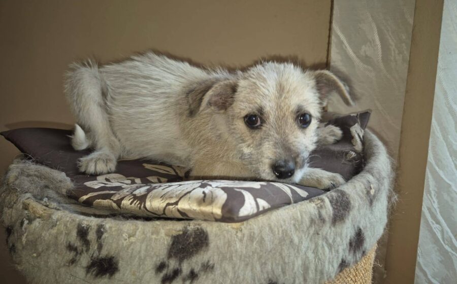 Dürfen wir vorstellen? Das ist Sari, und wie du siehst, hat die kleine Maus die sanftesten Augen der Welt! Mit ihren gerade mal drei Monaten ist sie noch ein richtiger Welpe und sie wird sich zu einer wundervollen kleinen bis mittelgroßen Hündin entwickeln. Ihr einzigartiges Aussehen erinnert ein wenig an ein kleines Lämmchen – so kuschelig und zart.