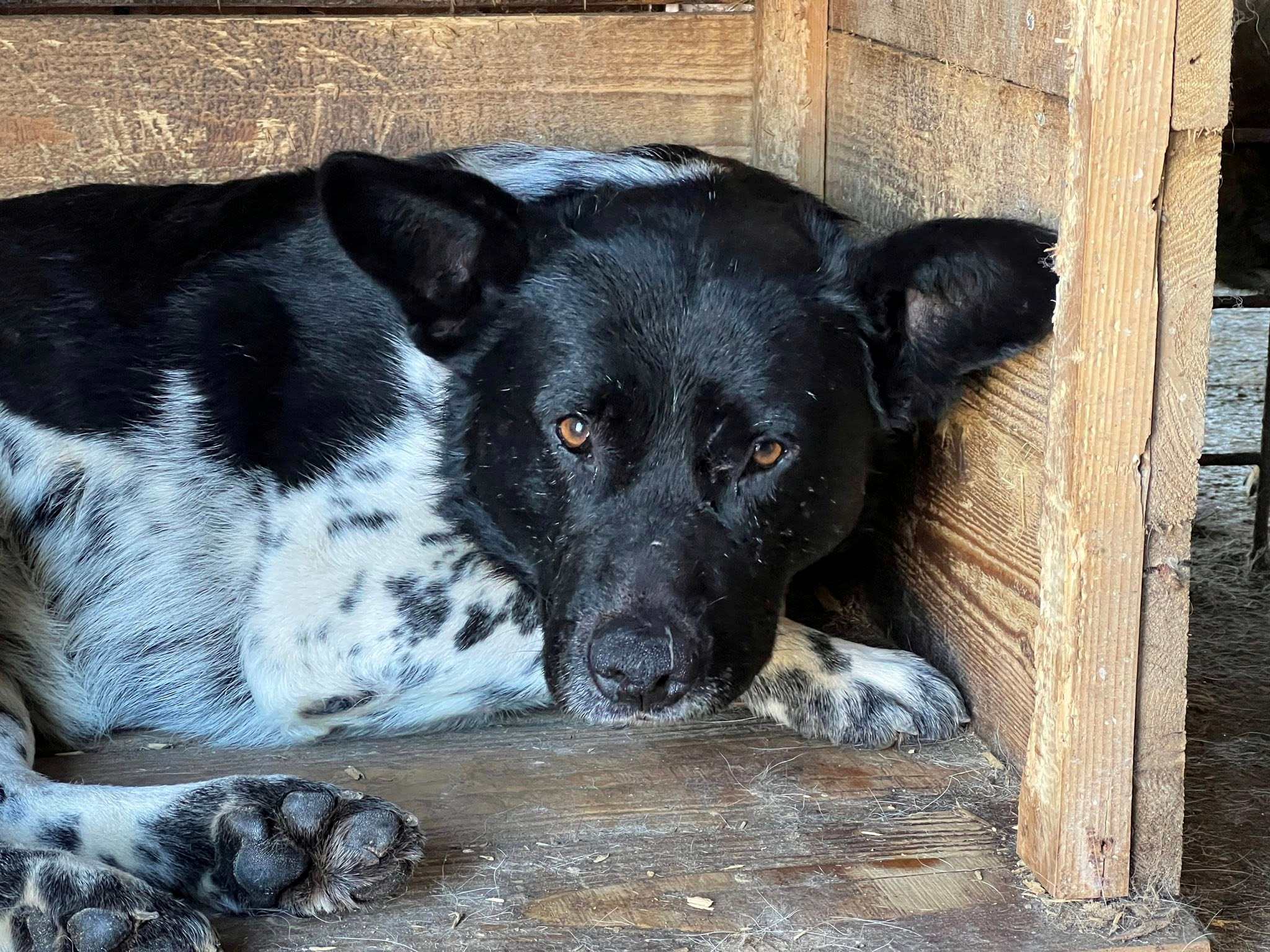 Sayo kam über die Hundefänger ins Shelter in Bistrița und versteht die Welt nicht mehr. Er lebte zuvor mit einer Gruppe von Streunern auf der Straße, bis Anwohner die Behörden informierten und die Hunde eingefangen wurden. Viel Kontakt zu Menschen hatte er in seinem bisherigen Leben vermutlich nicht. Der laute, hektische Shelter-Alltag überfordert ihn sehr, und man merkt deutlich, dass er mit der Situation unsicher ist.