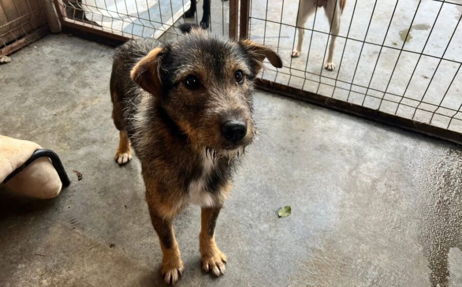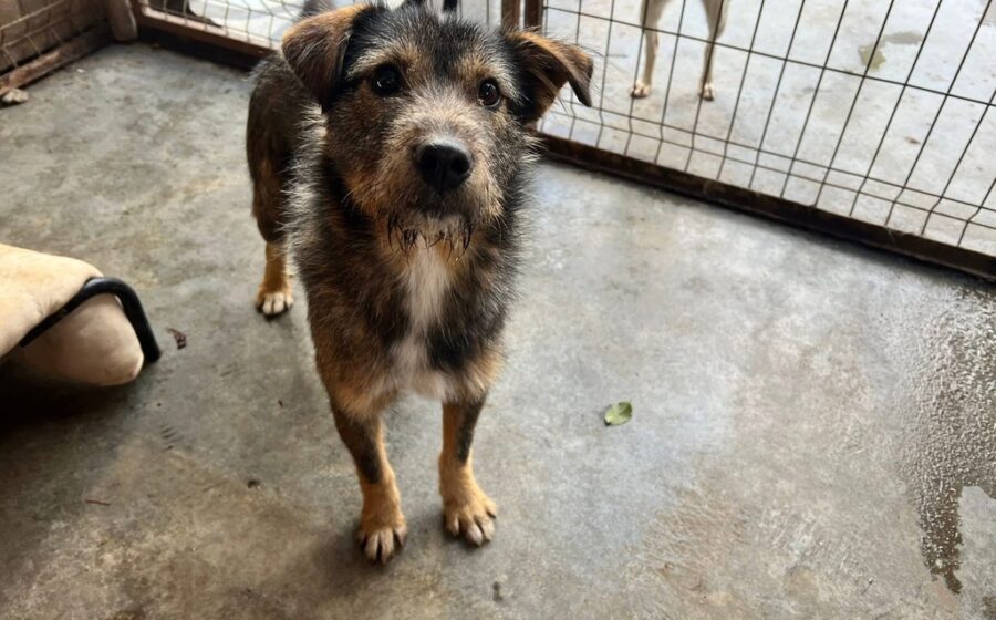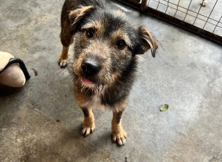 Kalter Betonboden und Gitterstäbe – das ist der Alltag des erst einjährigen Hundebubs Scott. Während draußen der Wind pfeift und die Temperaturen sinken, liegt er in seinem Zwinger und versucht, die Hoffnung nicht aufzugeben. Immer wenn jemand vorbeigeht, hebt er sein strubbeliges Köpfchen und schaut mit seinen neugierigen Knopfaugen erwartungsvoll hinaus. Vielleicht… vielleicht bleibt ja heute jemand stehen? Vielleicht öffnet sich das Tor für ihn und jemand sagt: „Komm, Scott. Du darfst heute nach Hause.“