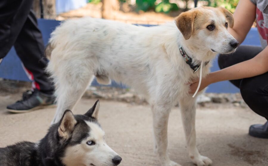 Semmerl ist mit einer Schulterhöhe von ca. 59 cm ein mittelgroßer Hund, der seine ganz wilden Jahre bereits hinter sich hat, aber immer noch aktiv ist. Er hat weiches, weißes Fell mit hellbraunen Abzeichen und ein wunderschönes, freundliches Gesicht. Leider hat der hübsche Rüde einen verkürzten Schwanz und darf deshalb nicht in die Schweiz vermittelt werden.