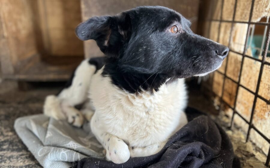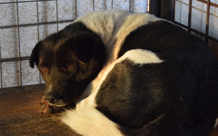Im Shelter ist Shaggy eingeschüchtert, fast, als hätte jemand sein ganzes Selbstvertrauen in einem Moment ausgelöscht. Dabei ist er ein wunderschöner Hund. Sein schwarz-weißes Fell macht ihn zu einem richtigen Hingucker und seine warmen braunen Augen erzählen eine Geschichte, die man nicht in Worte fassen kann. Eine Mischung aus Fragezeichen, Traurigkeit und vorsichtiger Hoffnung.