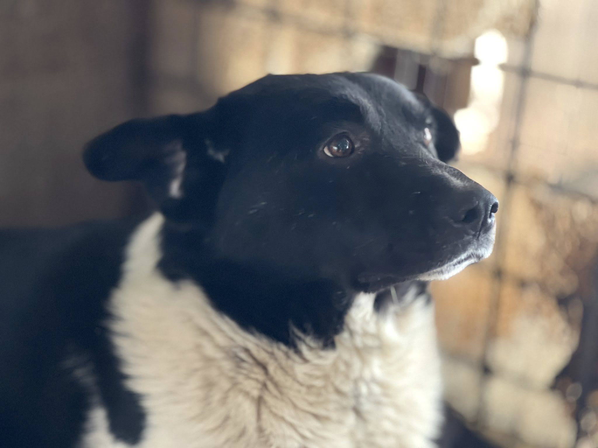 Im Shelter ist Shaggy eingeschüchtert, fast, als hätte jemand sein ganzes Selbstvertrauen in einem Moment ausgelöscht. Dabei ist er ein wunderschöner Hund. Sein schwarz-weißes Fell macht ihn zu einem richtigen Hingucker und seine warmen braunen Augen erzählen eine Geschichte, die man nicht in Worte fassen kann. Eine Mischung aus Fragezeichen, Traurigkeit und vorsichtiger Hoffnung.