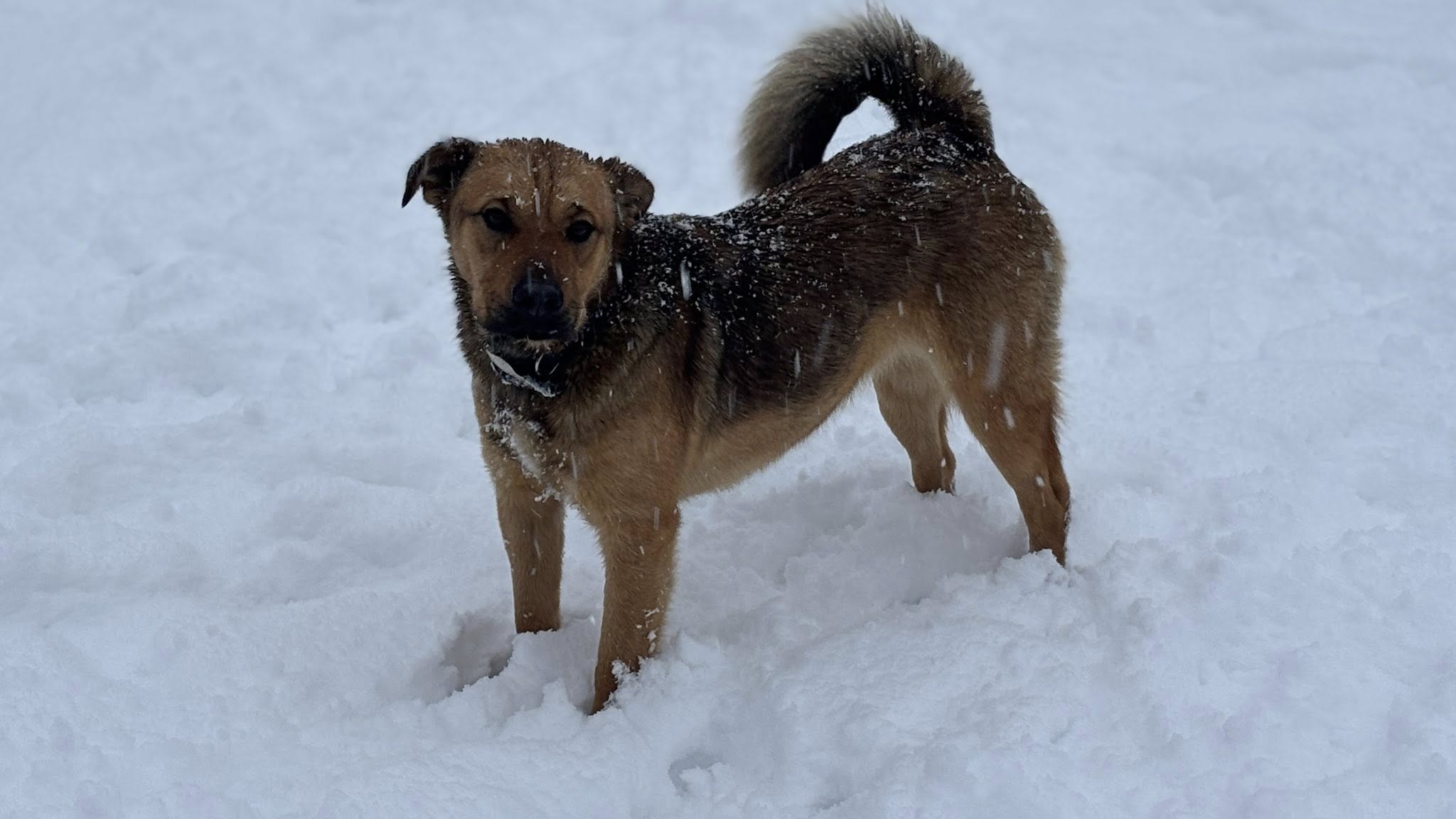 Die hübsche Hündin ist um die 42 cm groß und wiegt 14 kg. Mit ihrer wunderschöner Fellzeichnung, der breiten Schnauze und den leichten Stirnfalten lässt sich vermuten, dass es sich bei Sheena um einen Schäferhund / Shar-Pei Mix handeln könnte. Auch ein Spitz könnte in ihrer Ahnengalerie zu finden sein. Ganz und gar Mischling eben.