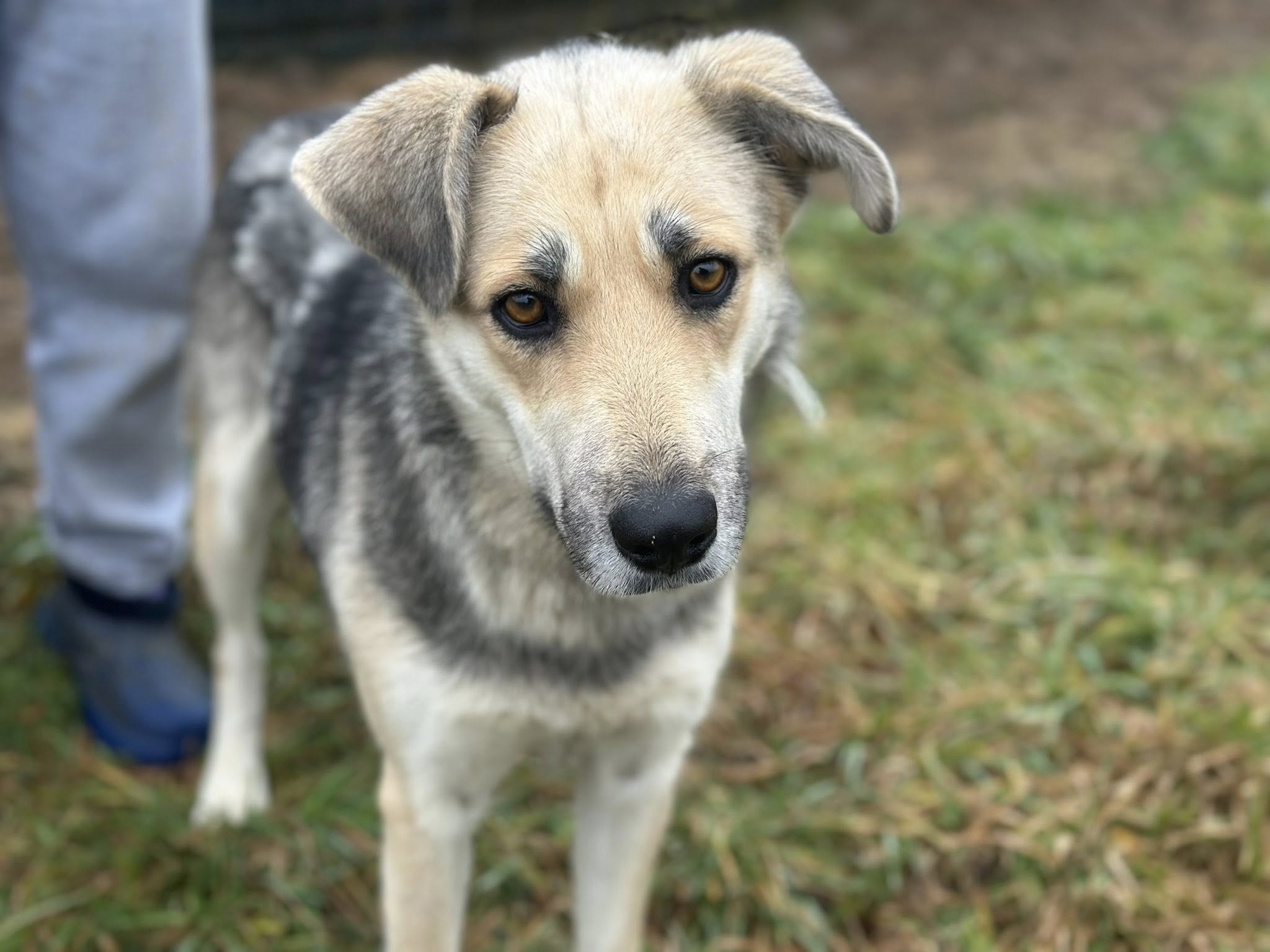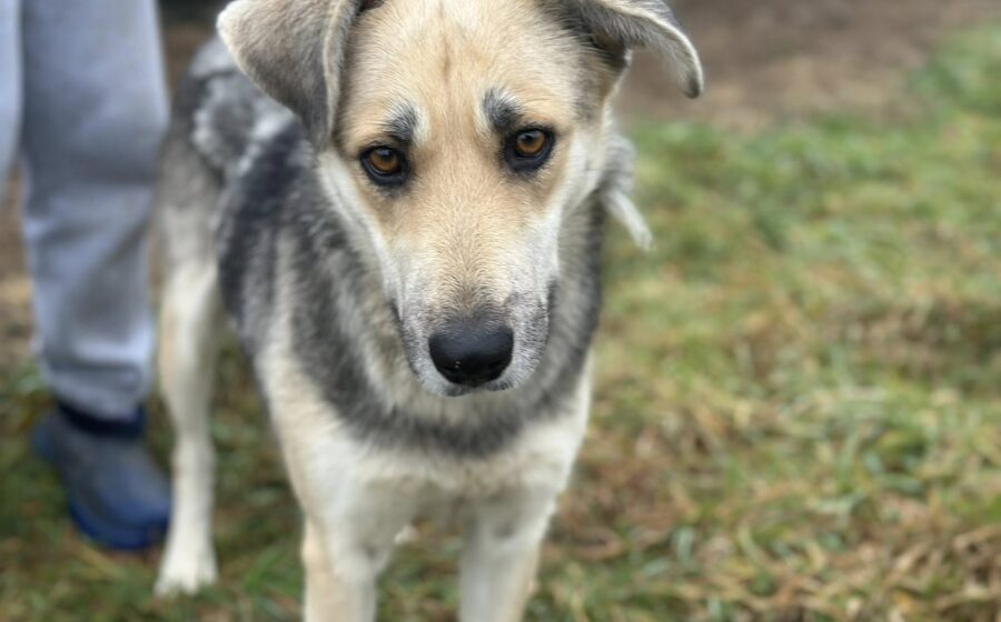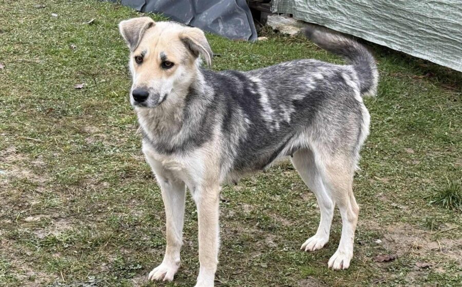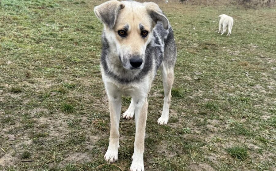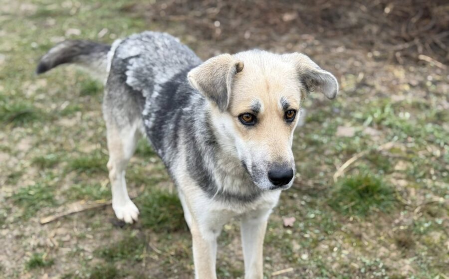 Shila ist ca. 60 bis 65 cm groß und hat dichtes, grau-braun gezeichnetes Fell und einen schlanken, muskulösen Körper. Aus glänzenden, hellbraunen Augen schaut sie hoffnungsvoll in eine bessere Zukunft.