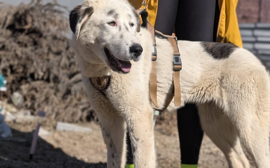 Optisch ist Sissy eine beeindruckende junge Hündin mit einem kräftigen Körperbau und einer eleganten Erscheinung. Ihr helles Fell mit den dunklen Abzeichen und den dunklen Ohren verleiht ihr ein besonders schönes und ausdrucksstarkes Aussehen. Durch ihre Größe, Statur und ihr ruhiges Wesen könnte sie Anteile von Herdenschutzhunden in sich tragen.
