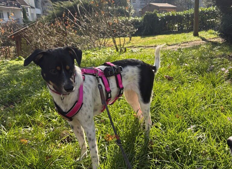 Im Außenbereich reagiert Smilla auf laute Geräusche noch unsicher, macht jedoch kontinuierlich Fortschritte. Hier benötigt sie weiterhin Menschen, die ihr mit Ruhe, Geduld und klarer Führung Sicherheit vermitteln.