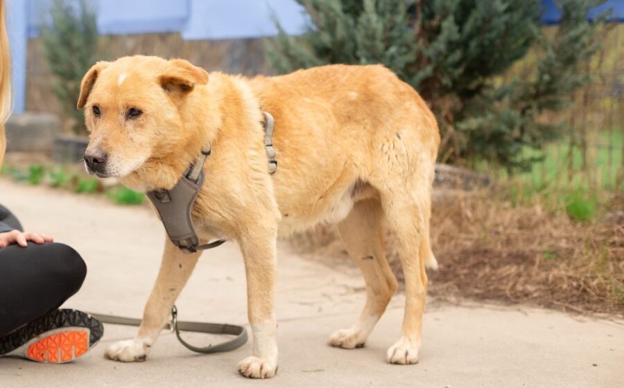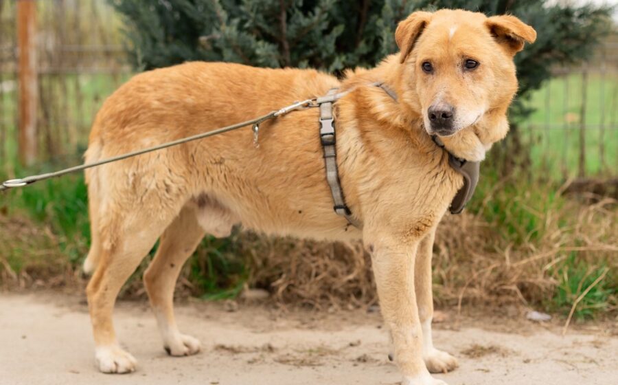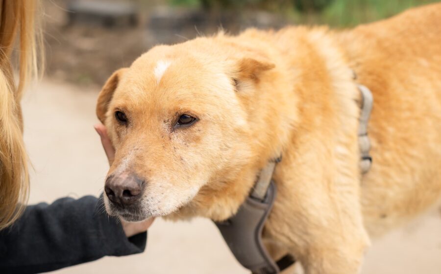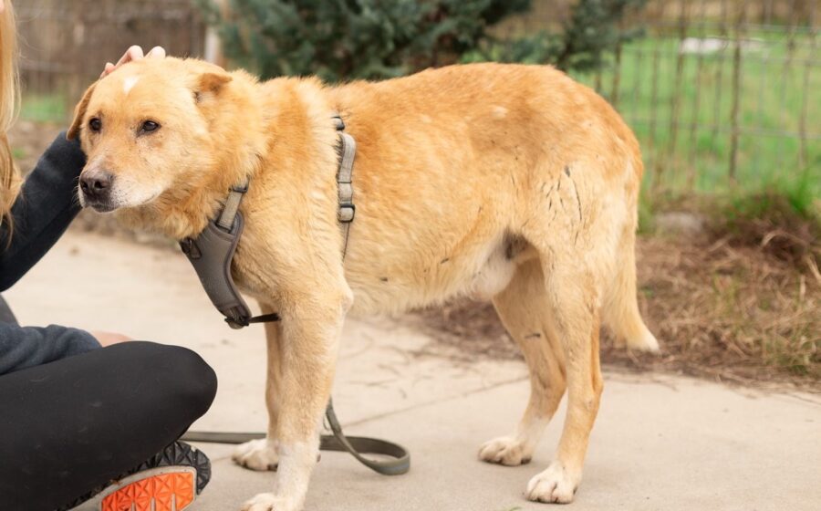 Wir schätzen Söckchen auf ein Alter von ca. 10 Jahren. Er ist ca. 56 cm groß und zählt seinem Alter entsprechend zu den ruhigen, bescheidenen Hunden, die nicht mehr viel vom Leben erwarten, aber dankbar sind für alles Gute, das es noch für sie bereithält. Söckchen hat weiches, goldbraunes Fell und ist leider körperlich nicht ganz auf der Höhe. Sein linkes Ohr wurde abgeschnitten, er hat schlechte Zähne und hinkt auf dem rechten Vorderfuß. Wenn es aber gelingt, ihn bei seiner Genesung zu unterstützen und wieder ein Lächeln in sein trauriges Gesicht zu zaubern, wird er seine Retter:innen sicherlich mit besonderer Treue und Dankbarkeit belohnt werde.