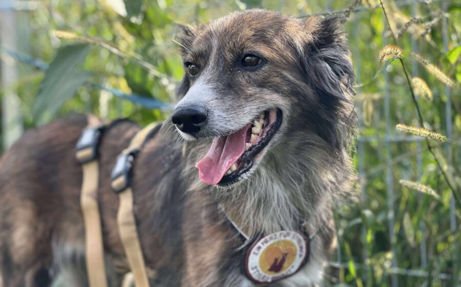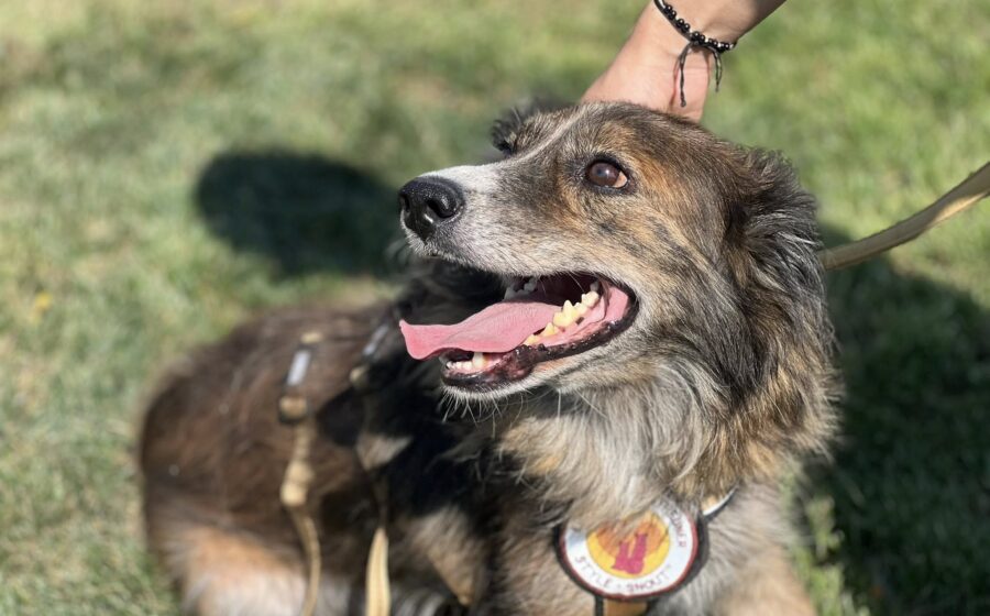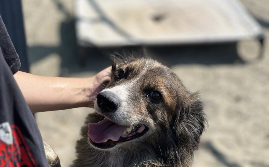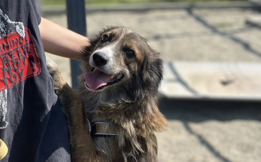 Die ca. 2 Jahre alte und mittelgroße Sole erinnert von ihrer Größe und Fellstruktur an einen Border Collie und wird vermutlich auch Hütehundeigenschaften zeigen. Ihr weiches, braun-meliertes Fell ist vermutlich auf einen bunten Rassen-Mix zurückzuführen, was sie zu einer echten Überraschungstüte macht. Ihre flauschigen Schlappohren umrahmen ein offenes und freundliches Gesicht, aus dem uns zwei fröhliche Augen anstrahlen. Hier im öffentlichen Shelter zeigt sie sich mit ihren Artgenossen gut verträglich. Katzen hat sie noch nicht kennenlernen können.