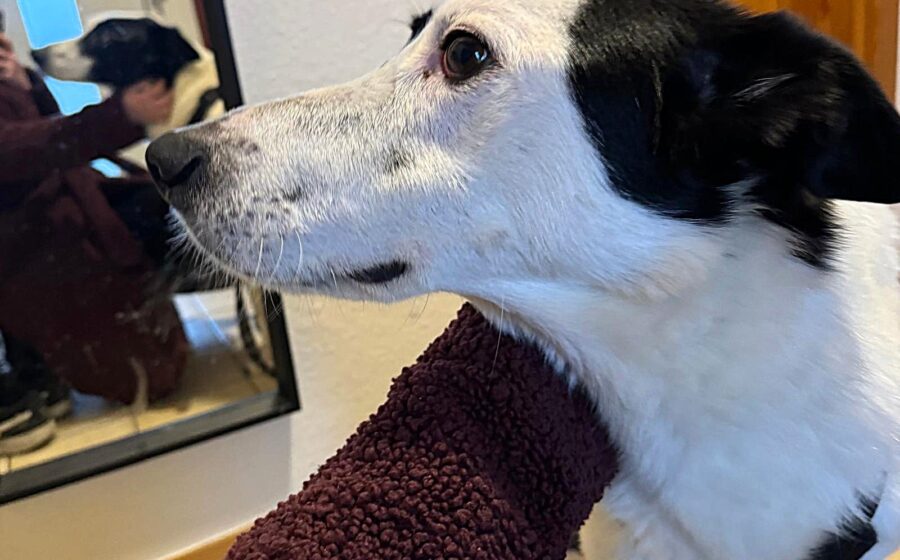 Mit seinen etwa 9,5 Jahren und einer Schulterhöhe von 65 cm gehört Solon zu den größeren Vertretern seiner Art – doch vor allem ist er ein sanfter Hund mit viel Charme. Besonders liebenswert ist Solons „Sprache der Ohren“: Mit seinen großen Lauscherchen kommuniziert er eifrig – sie wackeln fröhlich hin und her und verraten dabei immer, wie es ihm gerade geht. Eine charmante Eigenart, die jeden schnell zum Schmunzeln bringt.