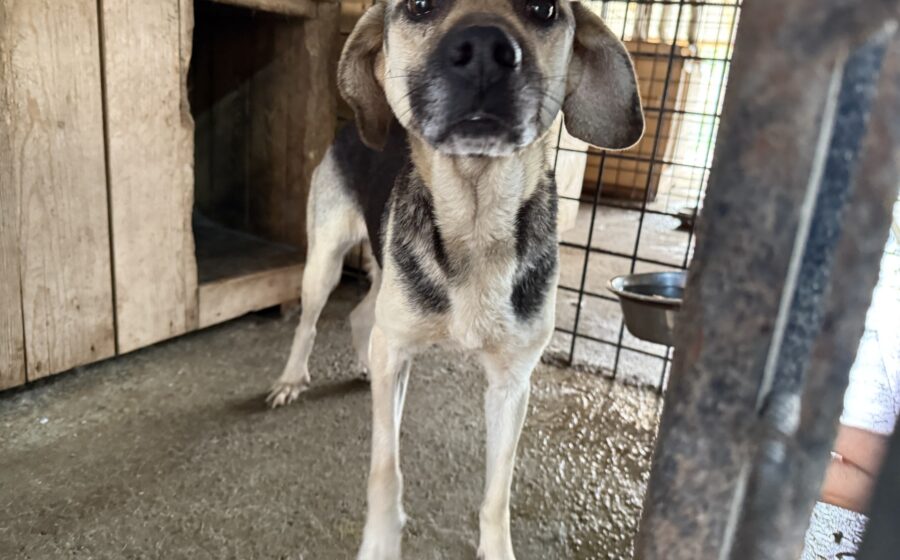 Schicksale, wie das von Sorina, sind keine Seltenheit in Rumänien. Tiere werden nicht als Familienmitglied angesehen und ohne Gnade zurückgelassen. Dabei ist die Maus Menschen gewöhnt und verhält sich unseren Helferinnen und Helfen in Bistrita gegenüber sehr freundlich. Nachdem sie den Zwinger in den ersten Wochen mit drei anderen Hunden geteilt hat, konnten wir sehen, dass sie auch mit anderen Hunden umgänglich ist. Die ca. 50 cm Schulterhöhe machen Sorina zu einer mittelgroßen Hündin, die mit großen traurigen Augen durch die Gitterstäbe ihres Zwingers schaut. Das hellbraun-schwarze Fell mit cremigem Verlauf und das bezaubernde Gesicht mit den weichen Schlappohren machen sie zu einer hübschen Erscheinung. Wie so oft können wir nur raten, aus welchem Rassemix diese schöne Hündin gezaubert wurde. Ob Sorina auch mit Katzen auskommt, ist bisher nicht bekannt.