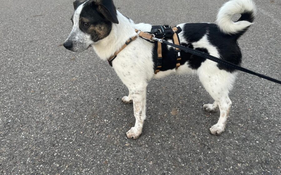 Speedy Gonzales, unser hübscher junger Rüde ist klug, aktiv und lernfreudig, und er macht seinem Namen alle Ehre – lebhaft, aufmerksam und voller Energie. Mit seinem kurzen, weißen Fell, der ganz besonderen braunen Zeichnung im Gesicht und den lustigen braunen Sommersprossen um die lackschwarze Nase und an den Beinen ist er ein besonders süßes Hundekind.