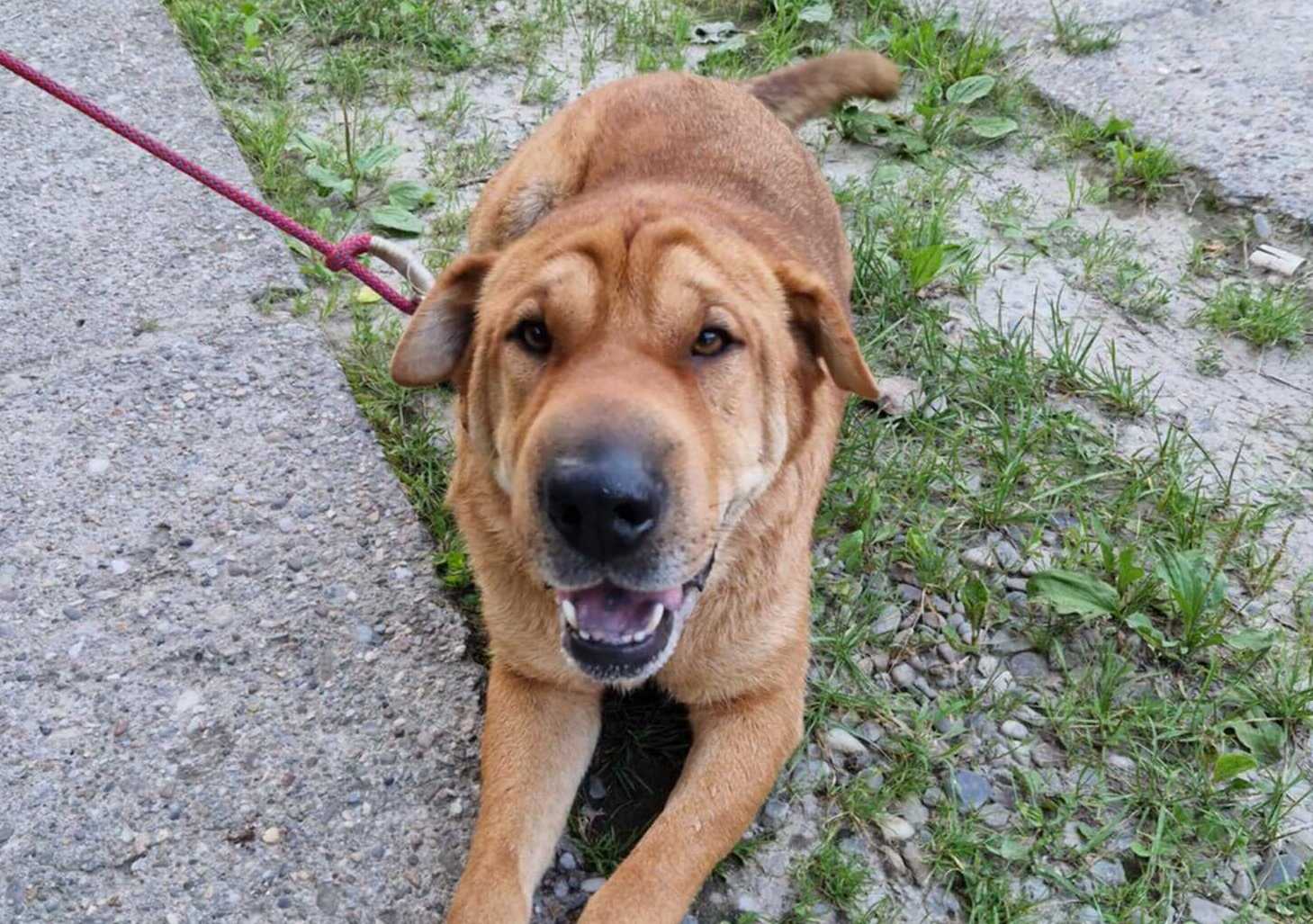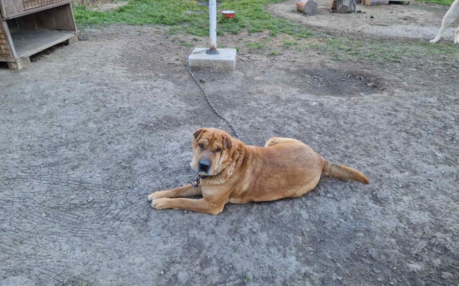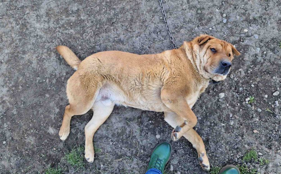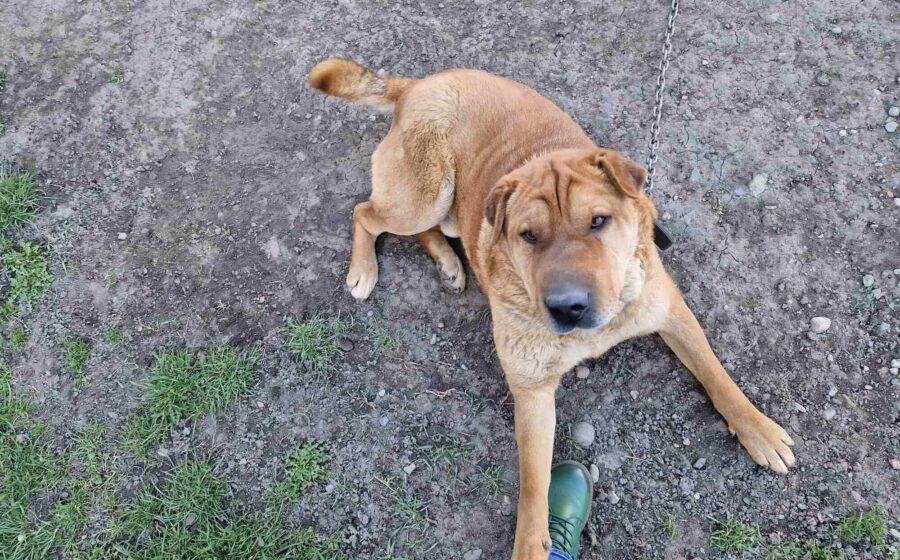 Spencer sieht aus wie ein Shar-Pei-Mischling, doch mit rund 65 cm Schulterhöhe und etwa 40 Kilogramm ist er deutlich größer und kräftiger als der klassische Vertreter dieser Rasse. Sein markanter Charakterkopf passt zu seinem eigenständigen Wesen, doch gleichzeitig zeigt er sich anhänglich, freundlich und verschmust. Menschen gegenüber ist er offen und lässt sich sehr gerne streicheln – ein Riese mit weichem Kern.
