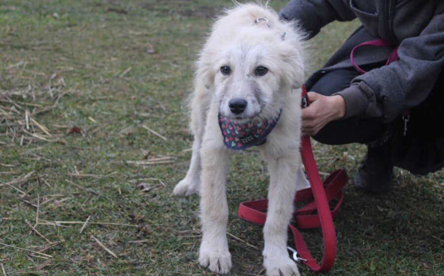 Gemeinsam mit ihrem Bruder Scottie wurde Strubbeline ausgesetzt gefunden und sofort ins Tierheim nach Fantanele gebracht. Sie ist aktuell etwa 5–6 Monate alt, knapp unter 50 cm groß und wird sicherlich noch ein kleines Stück wachsen.