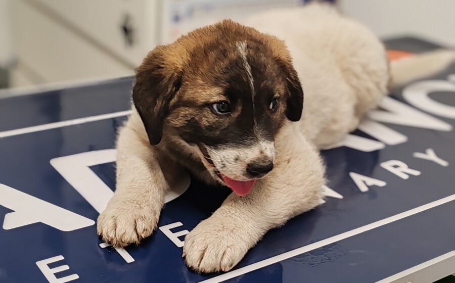 Mit ihren 25 cm und etwa 7 kg ist Süntje ein kleines, kräftiges Hundekind, das voraussichtlich zu einer eher großen Größe heranwachsen wird. Ihr Aussehen ist unverwechselbar und harmonisch: helles, weiches Fell trifft auf einen dunkleren Kopf mit perfekter Zeichnung. Vermutlich stecken Gene eines Herdenschutzhundes in ihr, die ihr besondere Qualitäten verleihen könnten – aufmerksam, klug und selbstständig, zugleich aber auch anhänglich, menschenbezogen und von Herzen treu.