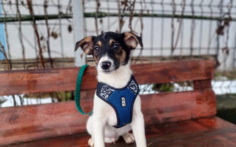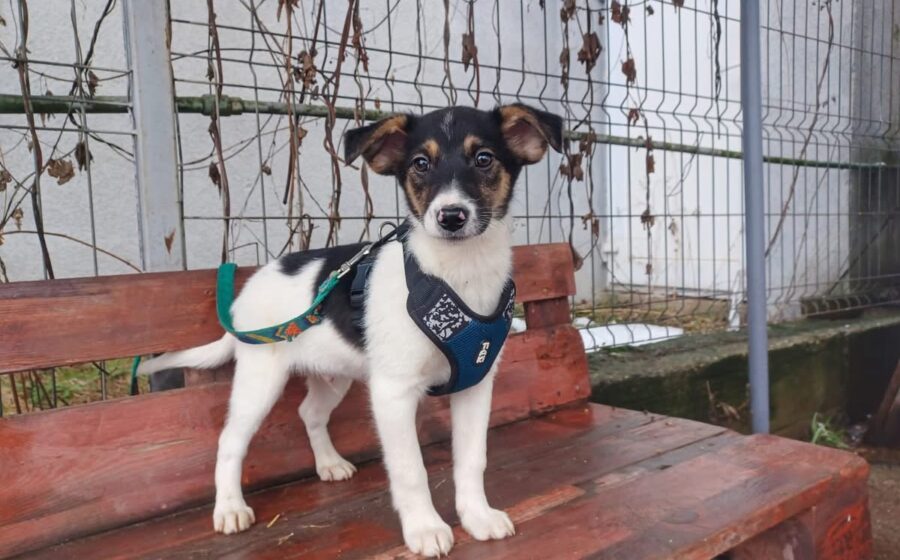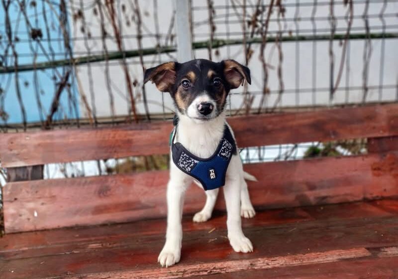 Sein flauschiges Fell in Weiß mit teilweise schwarzem Rücken und die noch etwas zu groß wirkenden Knickohren machen Tacci zu einem Charmeur der Extraklasse. Seine „ich schau dir in die Augen, Kleines“-Technik ist bereits perfekt und wird durch seine Superhelden-Gesichtsmaske komplettiert. Dunkle, glänzende Augen und zwei entzückende rosafarbene Hingucker auf seiner Nase machen ihn einfach unwiderstehlich. Ausgewachsen wird Tacci vermutlich mittelgroß werden. Seine Mama Chara ist ca. 42 cm hoch, aber wir denken, dass ihre Sprösslinge sie überholen werden. Tacci ist ein typischer Welpe – immer auf Entdeckungstour und offen für Abenteuer. Er ist hier gut verträglich mit anderen Hunden, wurde bisher jedoch noch nicht mit Katzen bekannt gemacht.