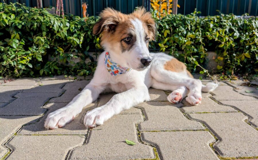 Seine Vorgeschichte ist leider weniger glänzend als sein Blick: Taloo wurde in sehr schlechtem Zustand, ganz allein, aufgefunden – viel zu dünn, geschwächt und dringend auf Hilfe angewiesen. Zum Glück durfte er sofort mit seiner Retterin nach Hause gehen und musste nicht ins Shelter, denn dort wäre es für ihn viel zu kalt gewesen. Dank Fürsorge, Wärme und regelmäßigen Mahlzeiten blüht er sichtbar auf und entwickelt sich jeden Tag ein Stück weiter.