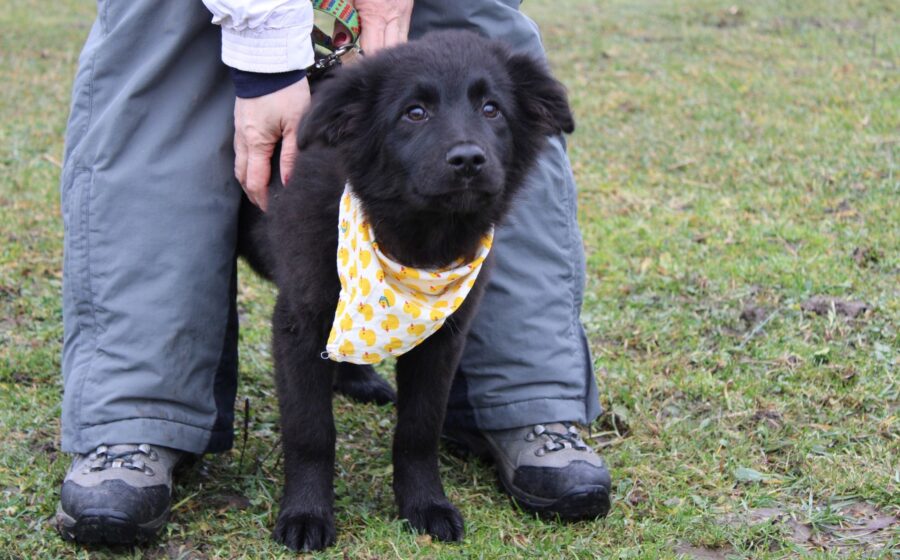 Tauro ist mit seinen zarten ca. 7 kg aktuell noch leicht wie eine Feder, aber seine Ausstrahlung ist schon jetzt riesig! Tauro hat wunderschönes schwarzes, flauschiges Fell, mit einem Hauch von Weiß – einfach zum Verlieben! Wir können nicht ausschließen, dass in Tauros Ahnengalerie ein paar fleißige Hütehunde mitgemischt haben. Tauro ist nicht nur bildhübsch, sondern auch super freundlich, offen, neugierig und sofort da, wenn man den Zwinger betritt. Er liebt es, nah bei den Menschen zu sein!