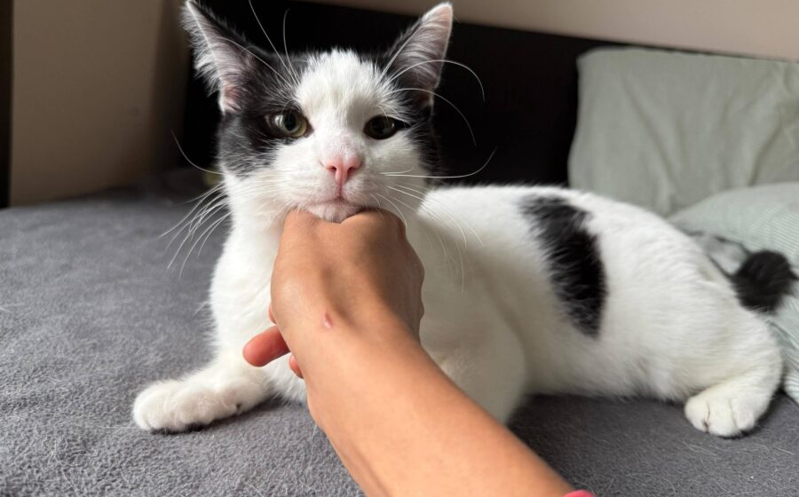 Taylors Start ins Leben war nicht einfach: seine ersten paar Wochen verbrachte er mit seiner Familie in einem Garten. Leider entwickelte er eine Augeninfektion, die ihn fast das Augenlicht gekostet hätte und kam in eine Pflegestelle. Glücklicherweise konnte er hier rechtzeitig behandelt werden, sodass er vollständig genesen konnte. Seine zwei Schwestern haben es leider nicht geschafft, sodass der kleine Kater nun alleine nach einer neuen Familie sucht.