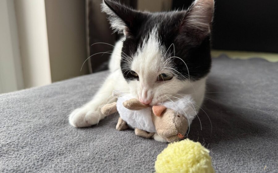 Auch wenn er anfangs etwas schüchtern sein kann: Sobald er aufgetaut ist, gibt es kein Halten mehr für Taylors endlose Liebe und seinen Wunsch nach Aufmerksamkeit. Sanft, liebevoll und verschmust erobert er jedes Herz im Sturm, wenn er sich hingebungsvoll an seine Menschen schmiegt und sich laut schnurrend auf ihrem Schoß zusammenrollt. Auch beim Spielen mit seinen Artgenossen ist dieser kleine, äußerst soziale Kater stets respektvoll und niemals rau. Ob er sich mit Hunden verträgt, konnte nicht getestet werden, aber wer Taylor adoptiert bekommt einen vergnügten und ruhigen Begleiter, der viel Wärme und Geborgenheit mitbringt.