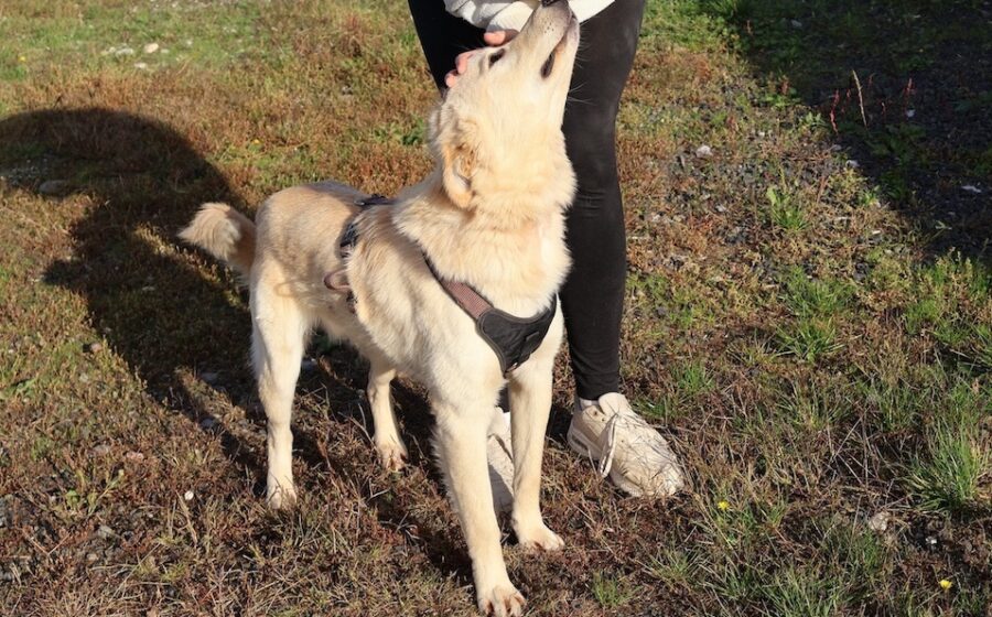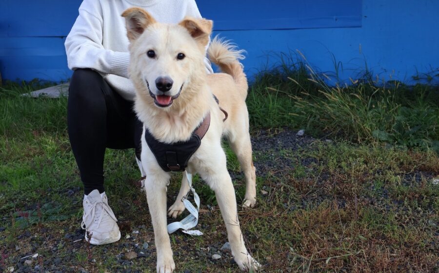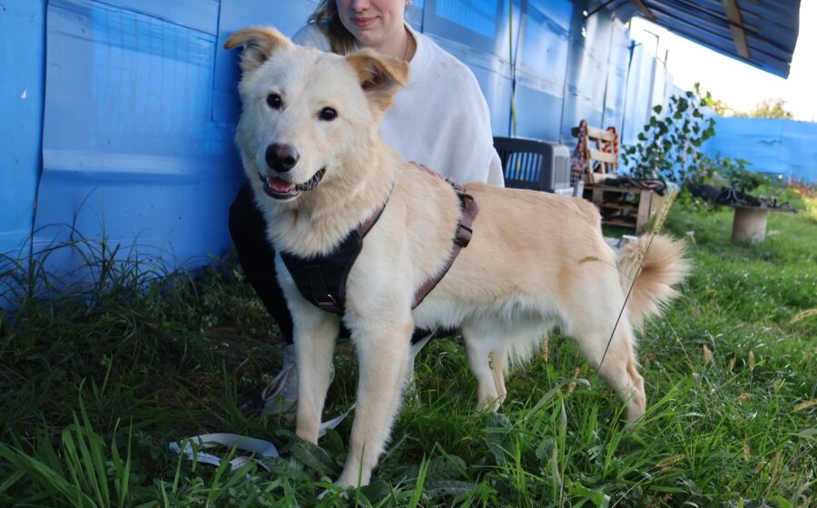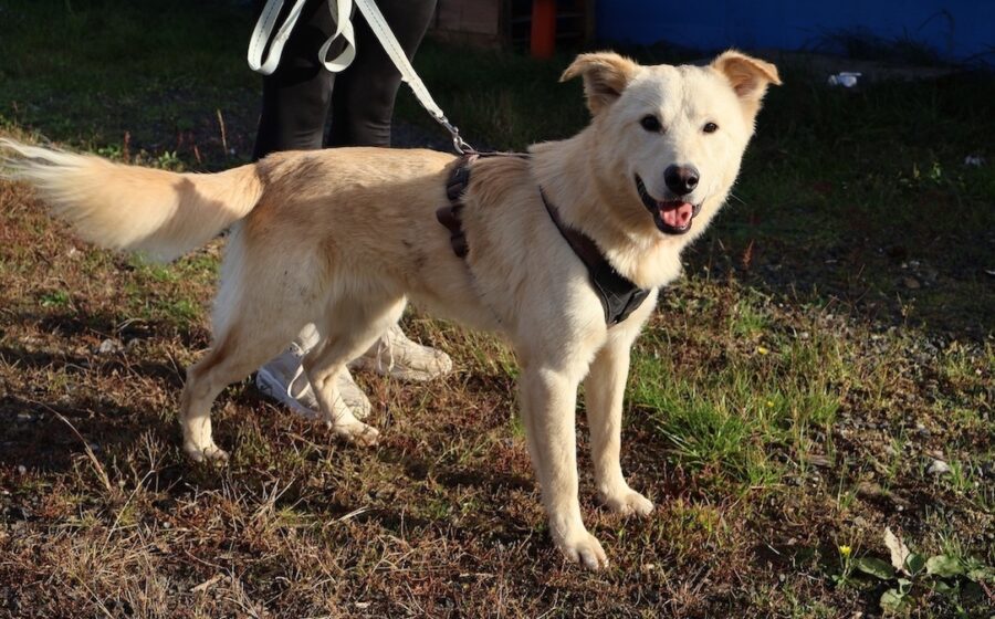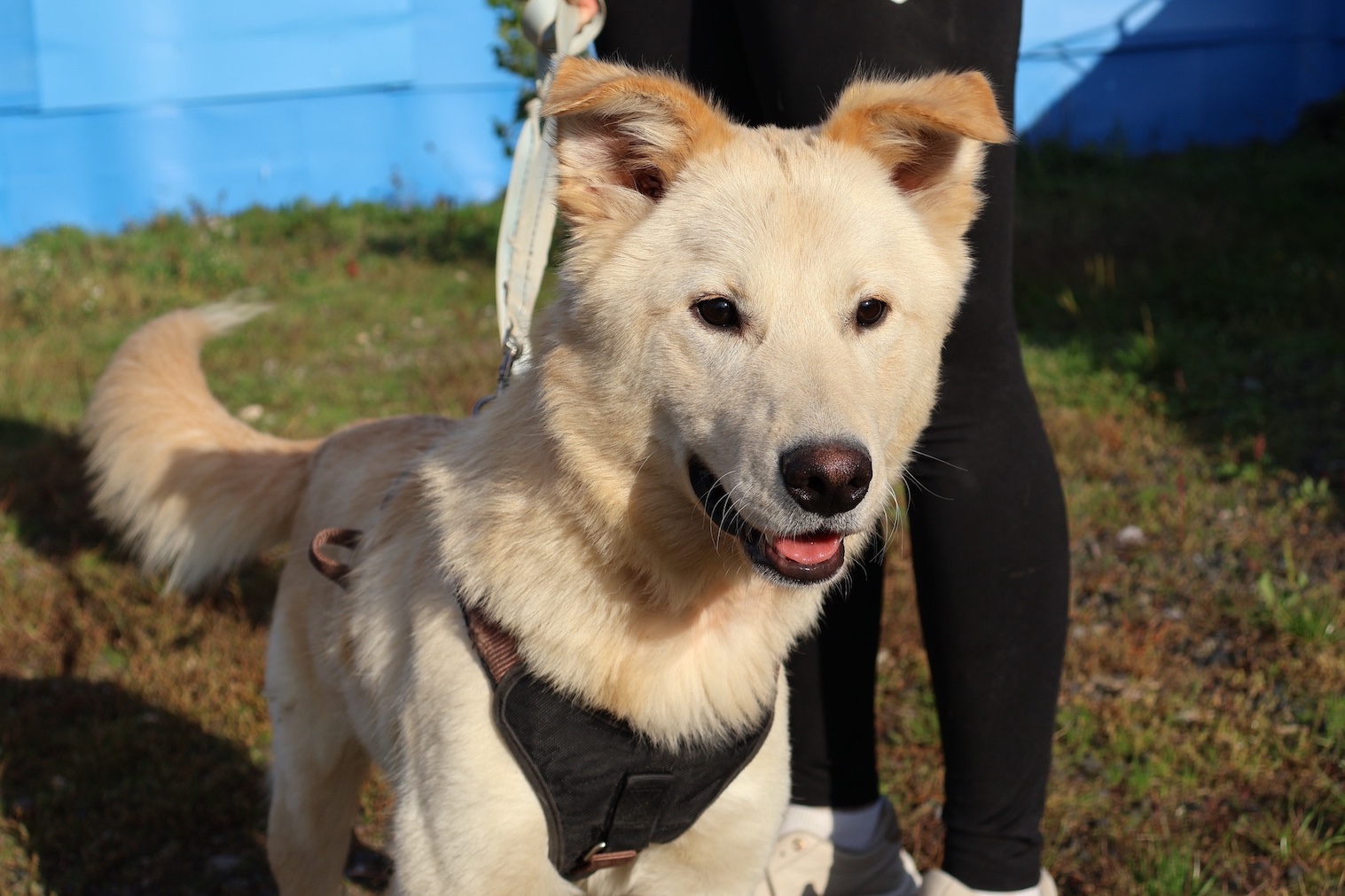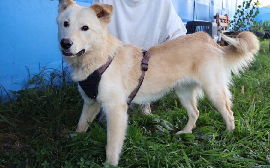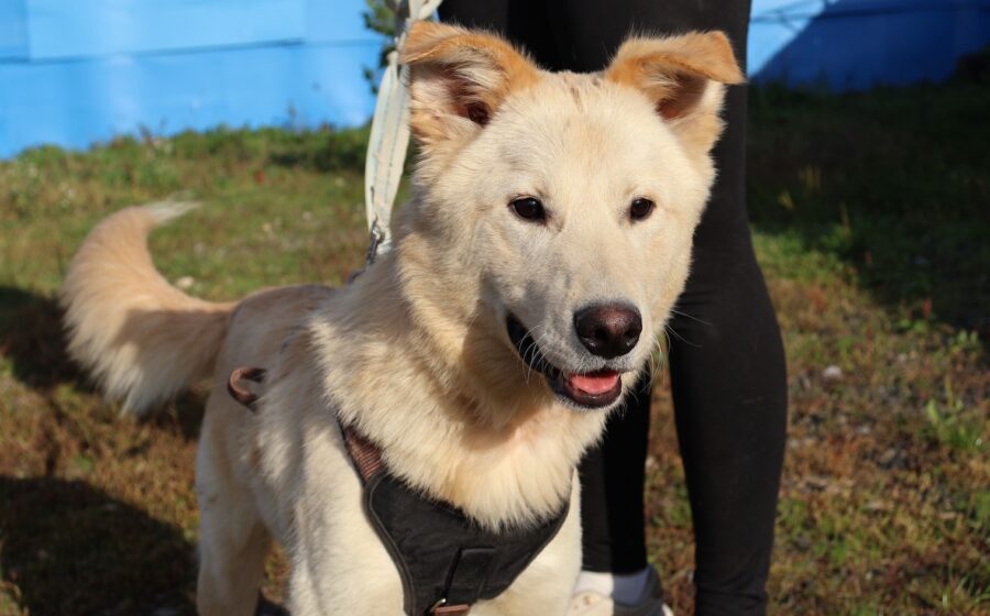 Tayo ist ein auffällig schöner, junger Hund mit hellblondem Fell und auf der Suche nach einem hundegerechten Leben bei liebevollen Menschen. Hast du vielleicht noch ein warmes Körbchen und einen Platz in deinem Herzen für ihn frei?