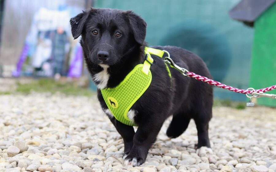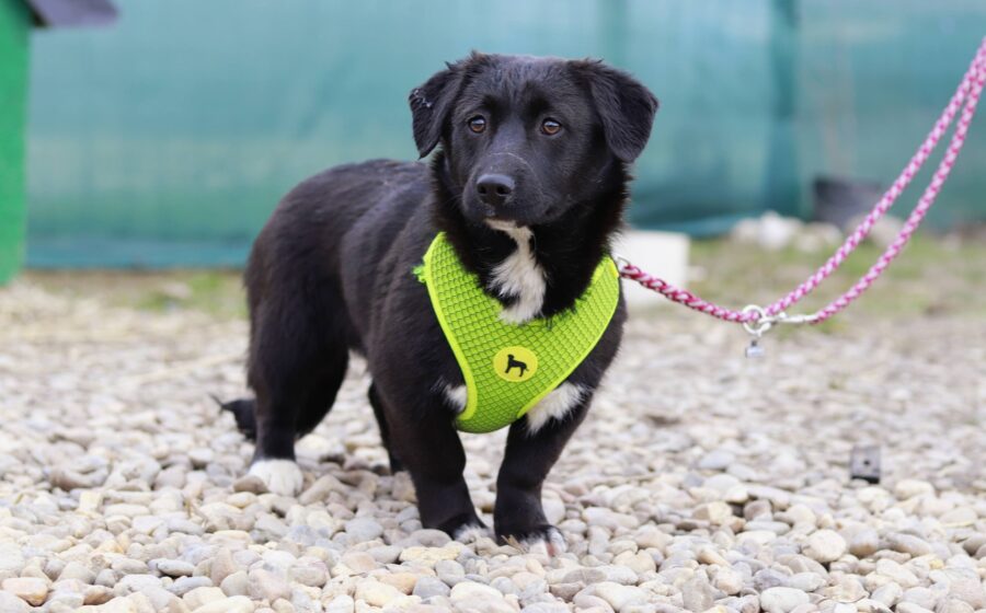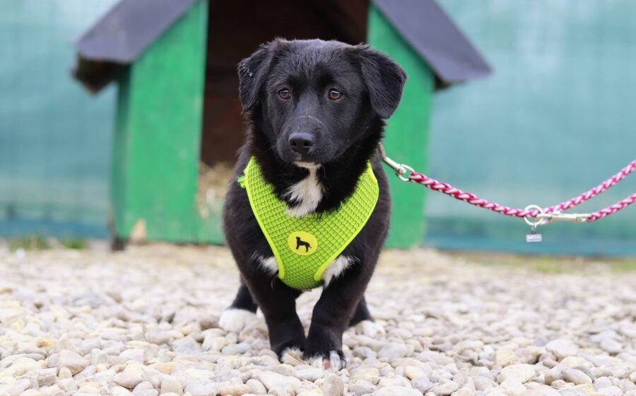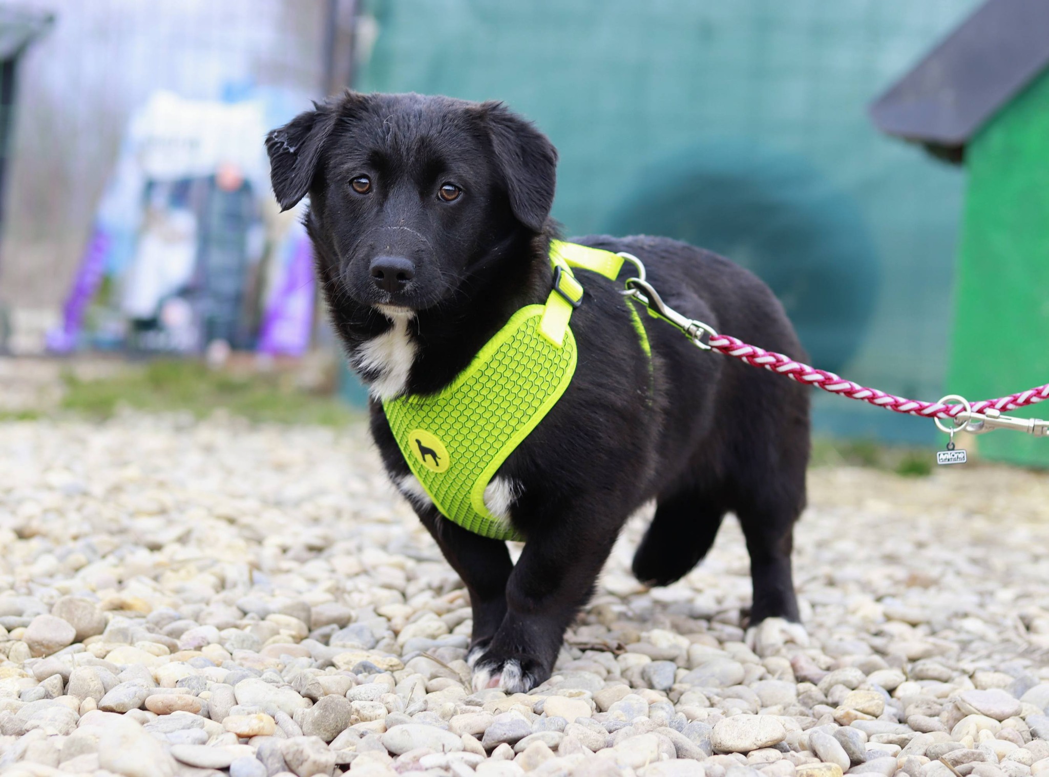 Tess ist eine etwa 4,5 Monate alte, kleine Hündin mit rund 5 Kilogramm Leichtigkeit. Wenn sie ausgewachsen ist, wird sie wohl eher kleinbleibend sein – perfekt für ein Leben an der Seite ihrer Menschen. Ihr schwarzes Fell glänzt wunderschön in der Sonne, das weiße Lätzchen und die weißen Pfötchen wirken, als hätte jemand sie liebevoll bemalt. Dazu die braunen Augen voller Neugier und die lackschwarze Nase, die die Welt am liebsten sofort erkunden möchte – Tess ist einfach ein hinreißendes Hundekind.