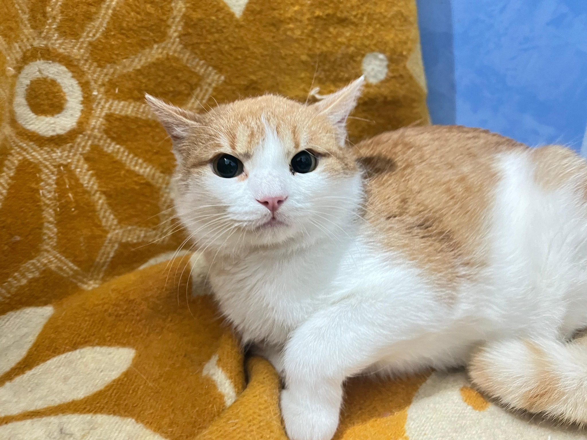 Theo ist etwa ein Jahr alt und lebt derzeit im Katzenzimmer, wo er sich langsam an seine Umgebung gewöhnt. Er ist ein schüchterner Kater, der Zeit braucht, um Vertrauen zu fassen. Fremden gegenüber reagiert er anfangs oft mit Verstecken oder einem vorsichtigen Fauchen – nicht aus Aggression, sondern aus Unsicherheit.