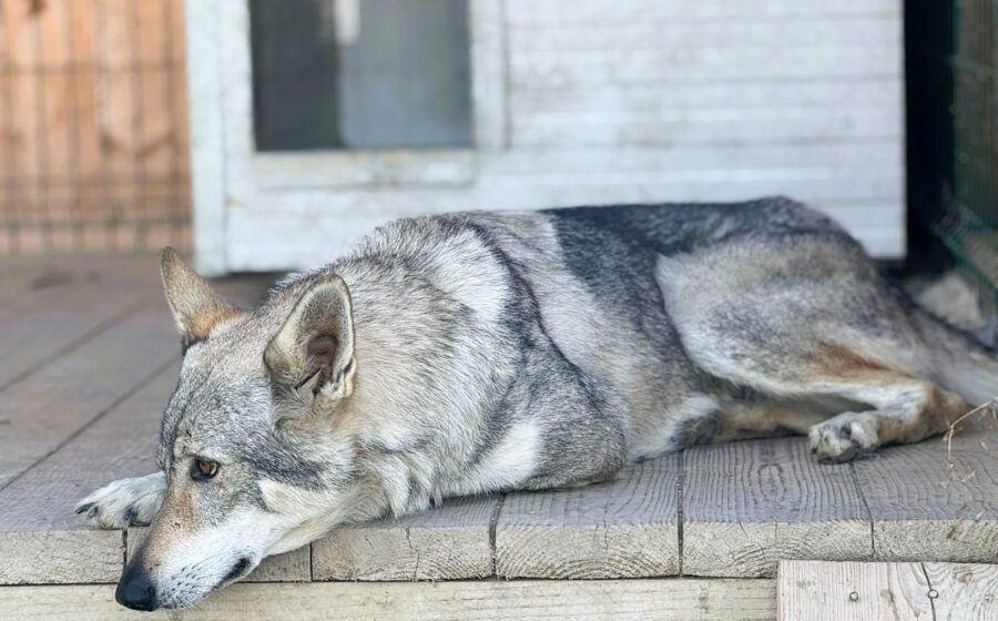 Schon auf den ersten Blick ist Tia ein echter Hingucker – sie hat diese unverkennbare, anmutige Ausstrahlung, die einen sofort fesselt. Ihr dichter, silbrig-grauer Pelz schimmert im Sonnenlicht, ihre bernsteinfarbenen Augen wirken klug und wachsam, und in ihrer Haltung liegt eine ruhige, fast majestätische Eleganz.