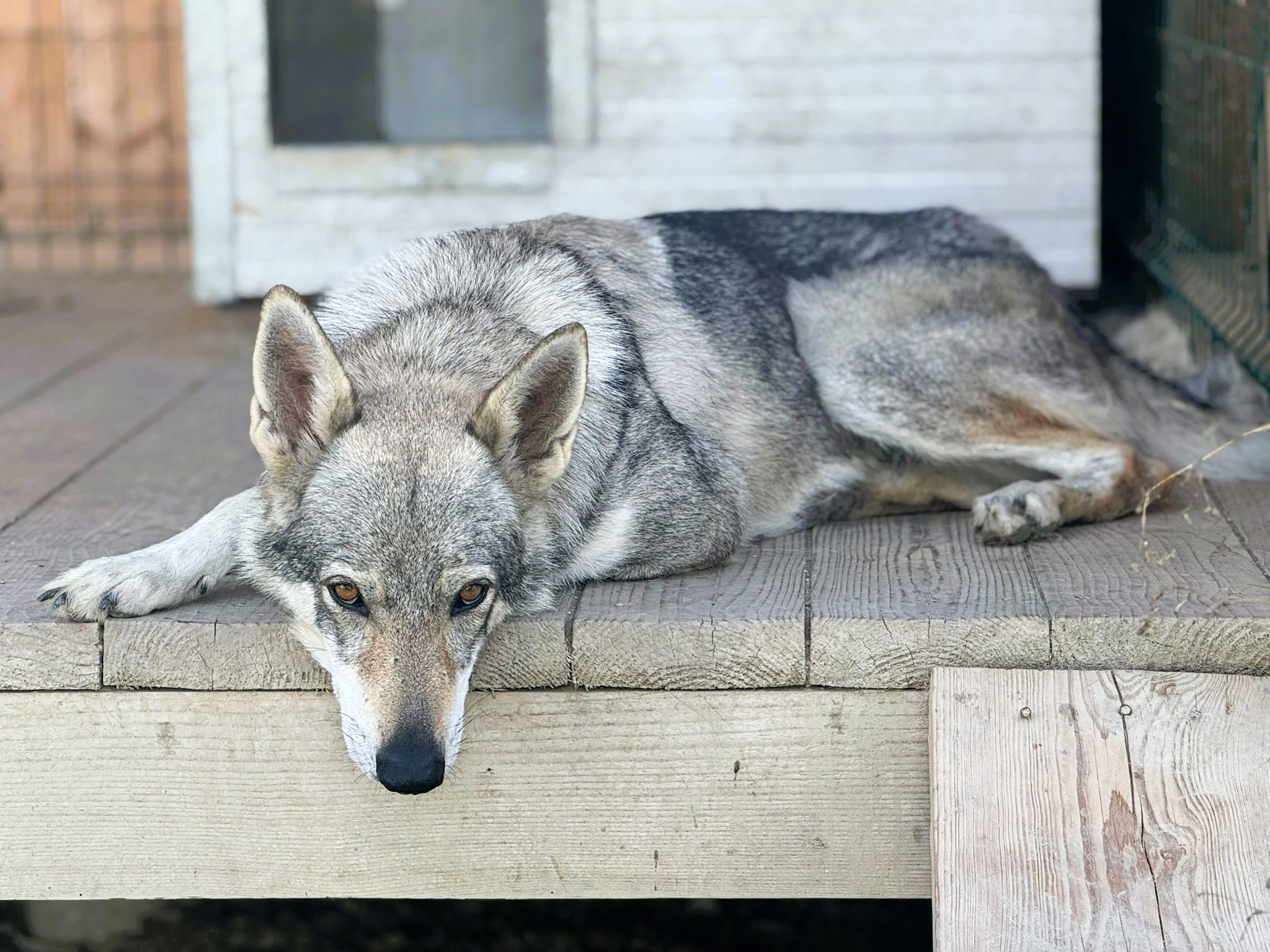 Tia ist eine Tschechoslowakische Wolfhündin. Diese außergewöhnliche und anspruchsvolle Rasse ist aus einer Kreuzung zwischen Deutschem Schäferhund und Karpatenwolf entstanden. Diese Hunde wurden ursprünglich für militärische Zwecke gezüchtet, vereinen aber heute die besten Eigenschaften beider „Welten“: die Intelligenz und Führigkeit des Schäferhundes und die Instinktsicherheit, Wachsamkeit und Eigenständigkeit des Wolfes.