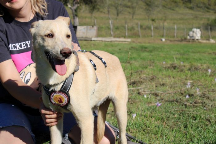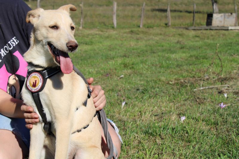 Aus seinem Zwinger und vor allem aus der sicheren Hütte heraus beobachtet er inzwischen neugierig, was um ihn herum passiert. Man merkt ihm an, dass er so richtig Lust auf ein abenteuerliches und buntes Leben hat, dazu aber an der Pfote genommen werden möchte.