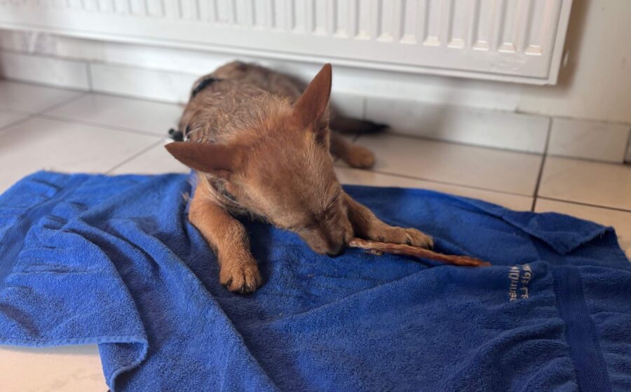 In ihrer Pflegestelle zeigt Valea, dass sie eine echte Schmusemaus ist. Legt man den Arm um sie, rollt sie sich wohlig hinein, streckt ihr kleines Bäuchlein entgegen und genießt jede Sekunde voller Hingabe. Sie liebt ihre Menschen – mit ganzem Herzen und voller Vertrauen.