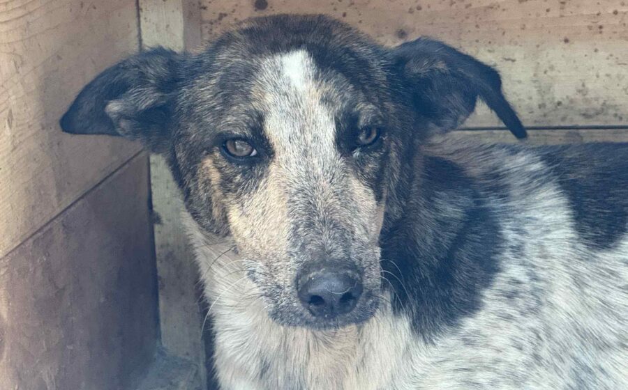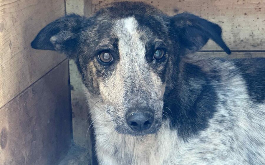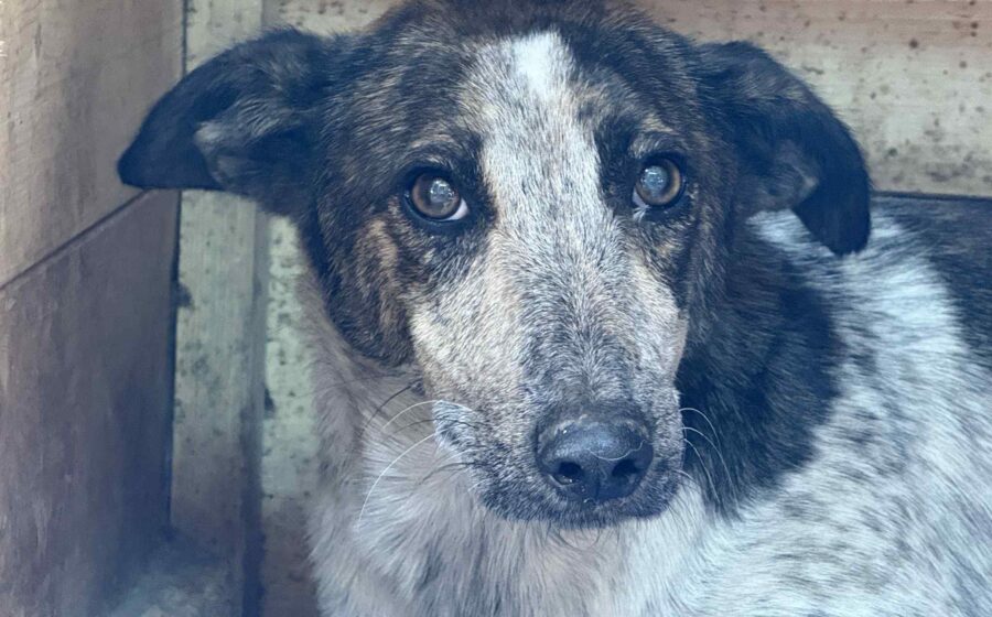 Die sensible Hündin durfte bisher wahrscheinlich wenig gute Erfahrungen mit Menschen machen. Doch in ihrem Blick liegt etwas ganz Zartes, das zeigt, dass sie tief im Inneren hofft, dass es da draußen jemanden gibt, der ihr mit Geduld und Liebe begegnet.