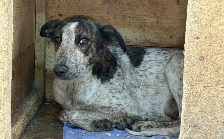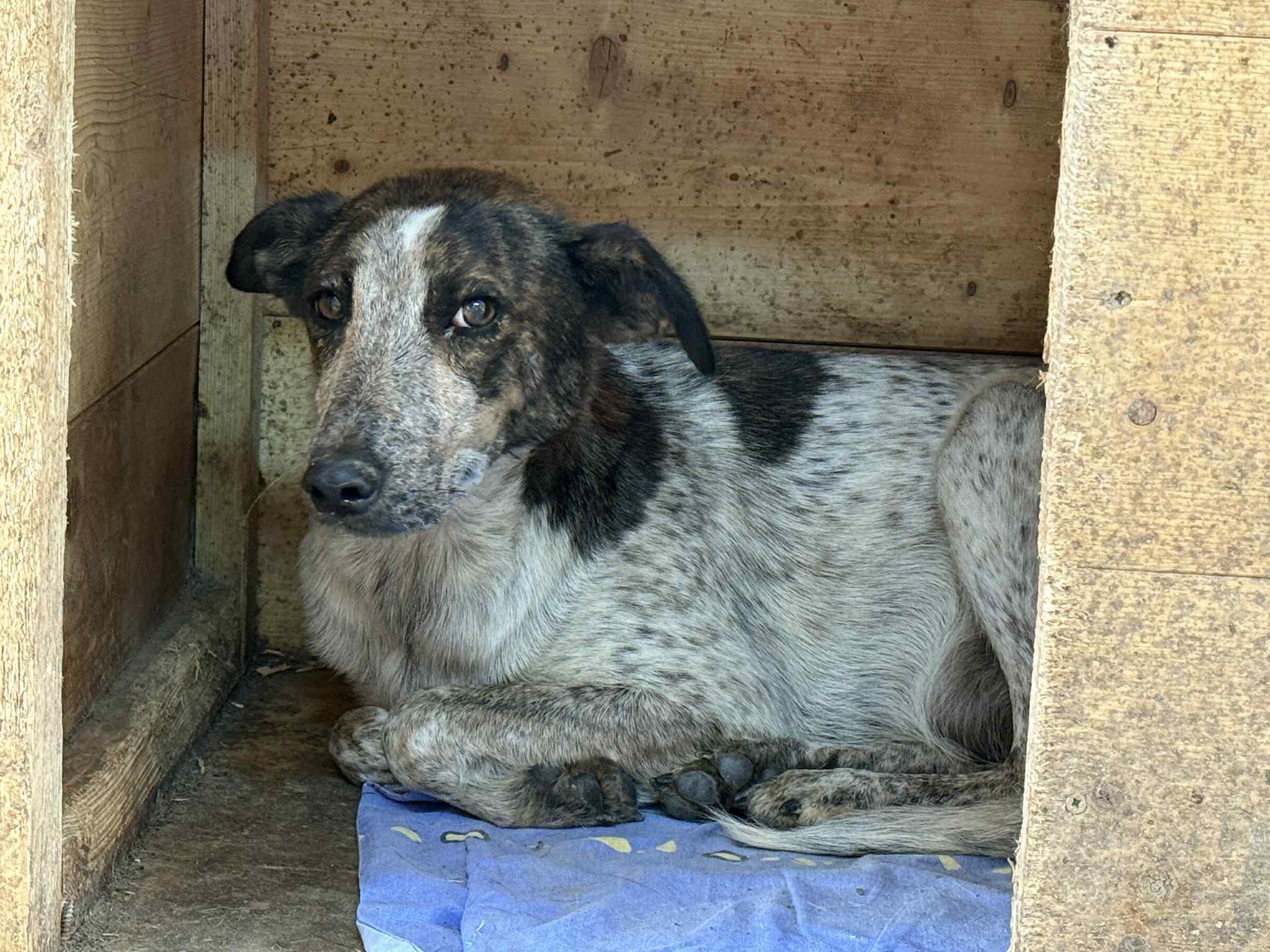 Velia ist eine rund 3 Jahre alte wunderschöne, sanfte Hündin, die im Moment leider noch sehr ängstlich ist. Die Hundefänger brachten sie ins Tierheim, und seitdem verbringt sie die meiste Zeit in ihrer Hütte, wo sie sich sicher fühlt. Wenn Menschen in ihre Nähe kommen, zieht sie sich lieber zurück – Berührungen sind derzeit noch nicht möglich.