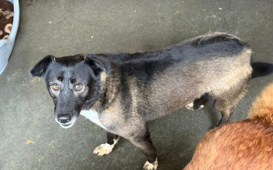 Über die Vergangenheit von Venus wissen wir leider nichts – doch es ist anzunehmen, dass sie keine schönen Erfahrungen mit Menschen machen durfte. Was zählt, ist das Jetzt und die kleinen, aber wichtigen Fortschritte, die sie zeigt. Venus ist weiterhin eher schüchtern, lässt sich inzwischen jedoch am Kopf vorsichtig streicheln. Zwar genießt sie den Kontakt noch nicht wirklich, doch sie lässt das Anfassen zu und nimmt Futter aus der Hand – ein großer Schritt für diese sensible Hündin. Auch durch das Gitter nimmt sie Leckerlis an. Ihr Vertrauen in den Menschen ist noch fragil, aber sichtbar im Aufbau.