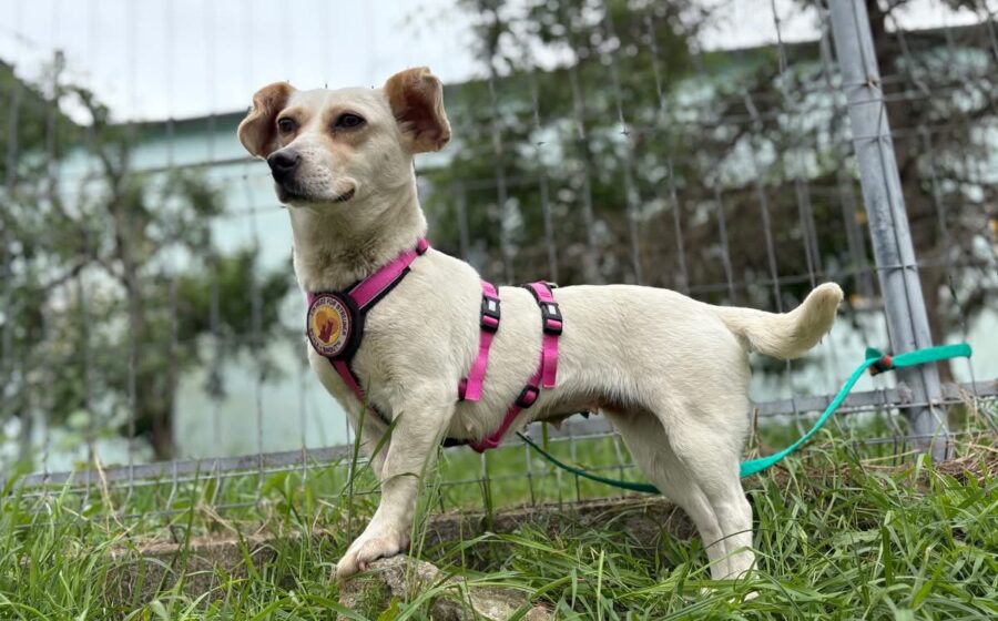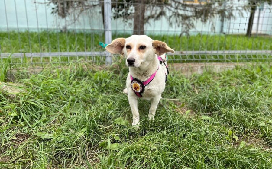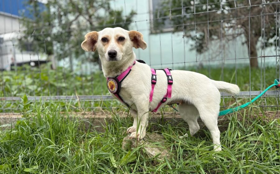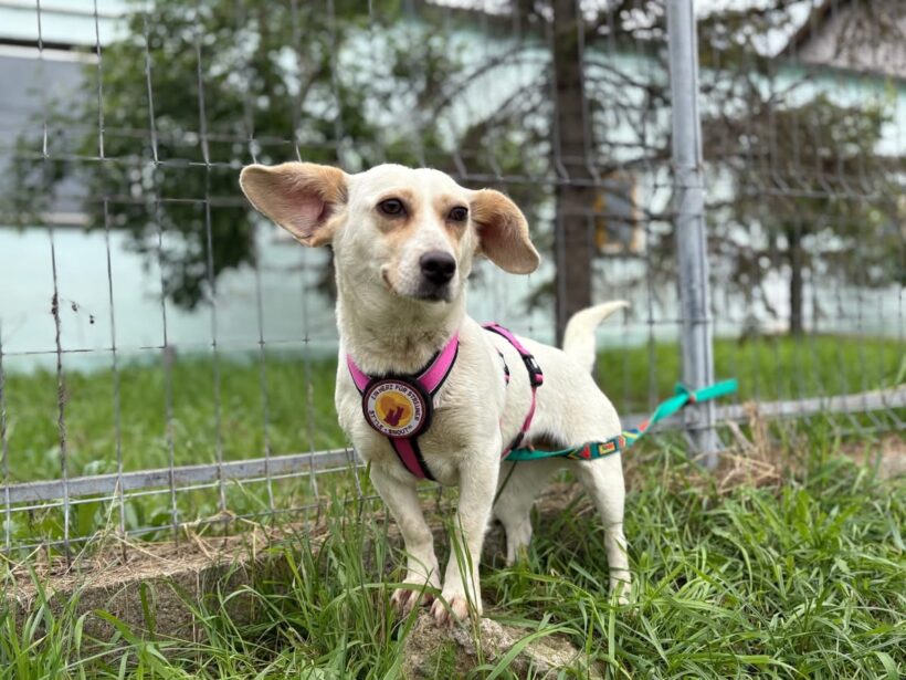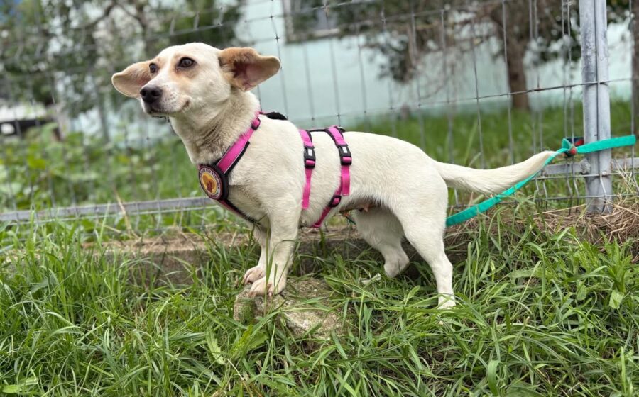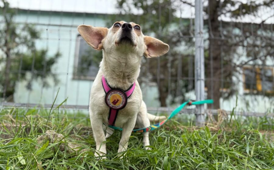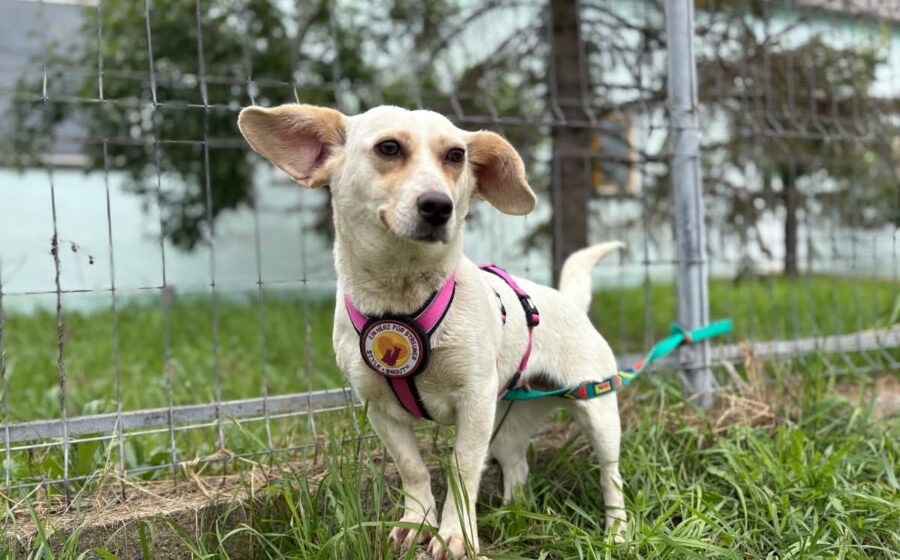 Vichy läuft gut an der Leine, lässt sich gerne streicheln und mag Leckerlis. Sie scheint sehr aktiv und verspielt zu sein und versteht sich auch gut mit ihren Artgenossen. Ob das auch für Katzen gilt, wissen wir nicht. Vichy hat eine kleine Größe von 33 cm und ein zartes Gewicht von 9 kg. Ideale Voraussetzungen, um überall dabei zu sein. Ihr eindeutiges Erkennungsmerkmal sind ihre riesigen Öhrchen, die wie ein Stimmungsbarometer jede Gefühlsregung Vichys anzeigen.