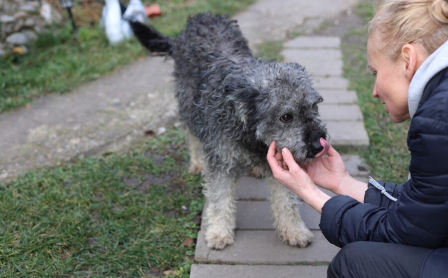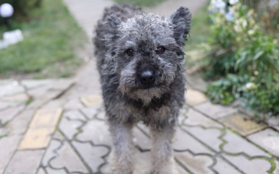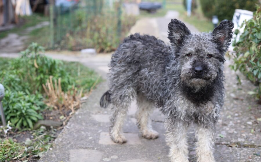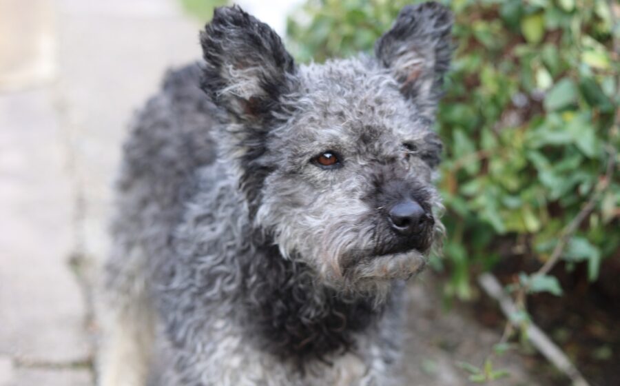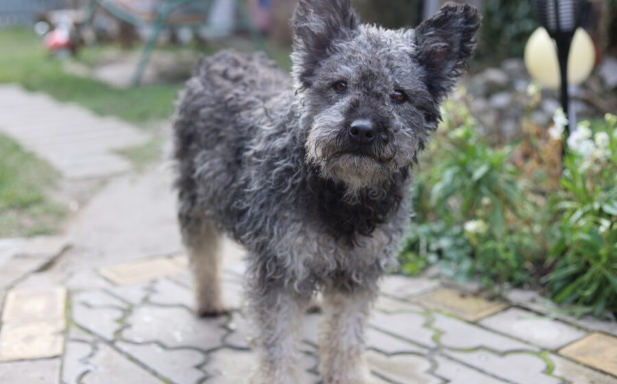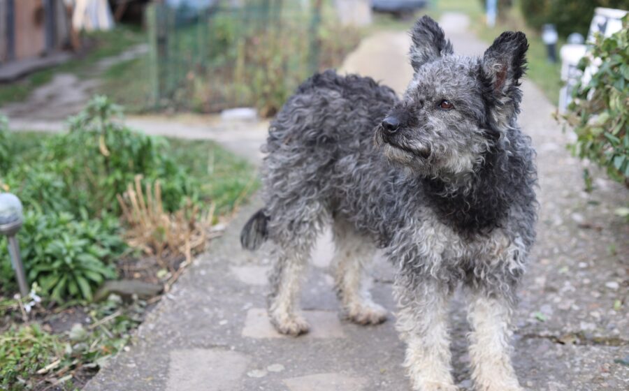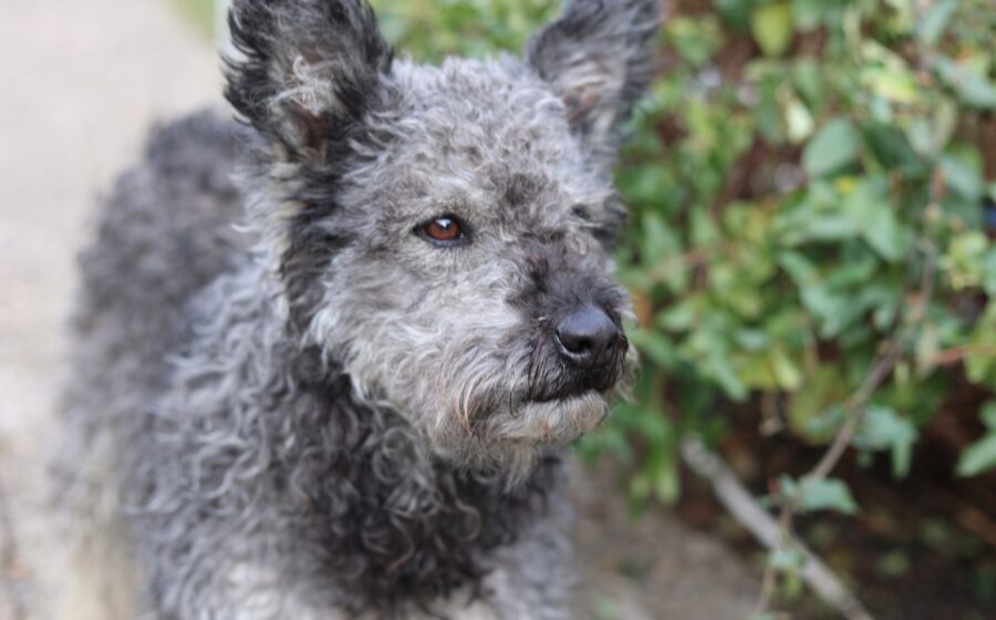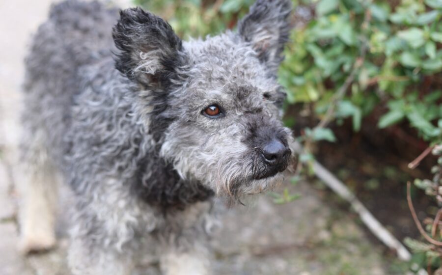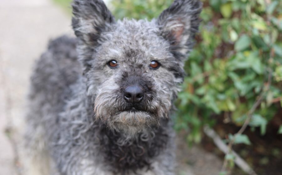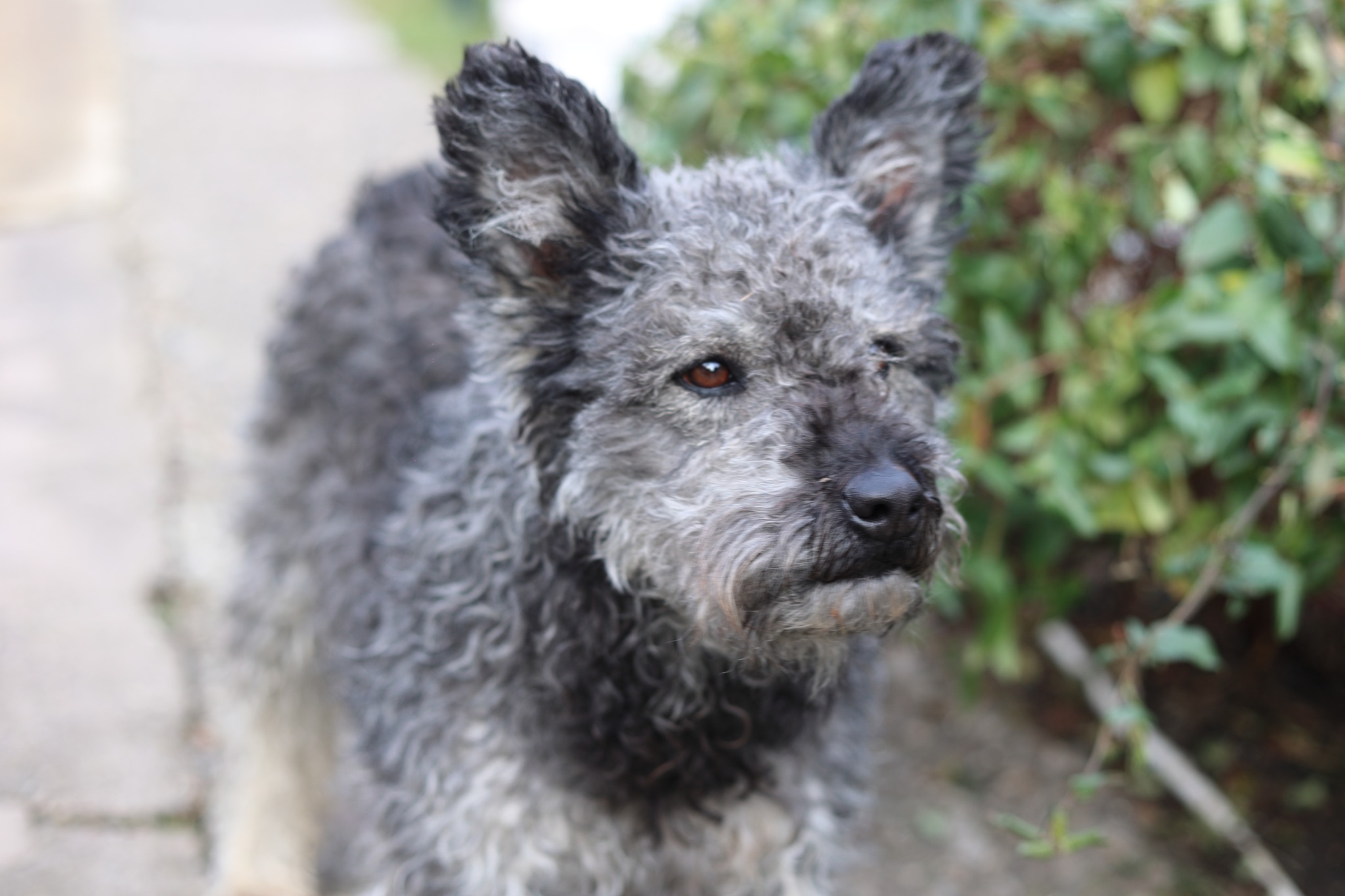 Vita ist einfach nur toll – innerlich wie äußerlich. Optisch erinnert sie stark an einen Pumi, ein genetischer Einschlag ist durchaus möglich. Sie begeistert mit ihrem grau gelockten, gar nicht allzu drahtigen Fell, ihren wunderbar kecken Stehohren und ihren tiefen, warmen braunen Augen, die direkt ins Herz schauen.