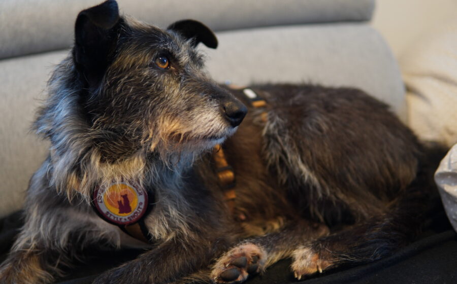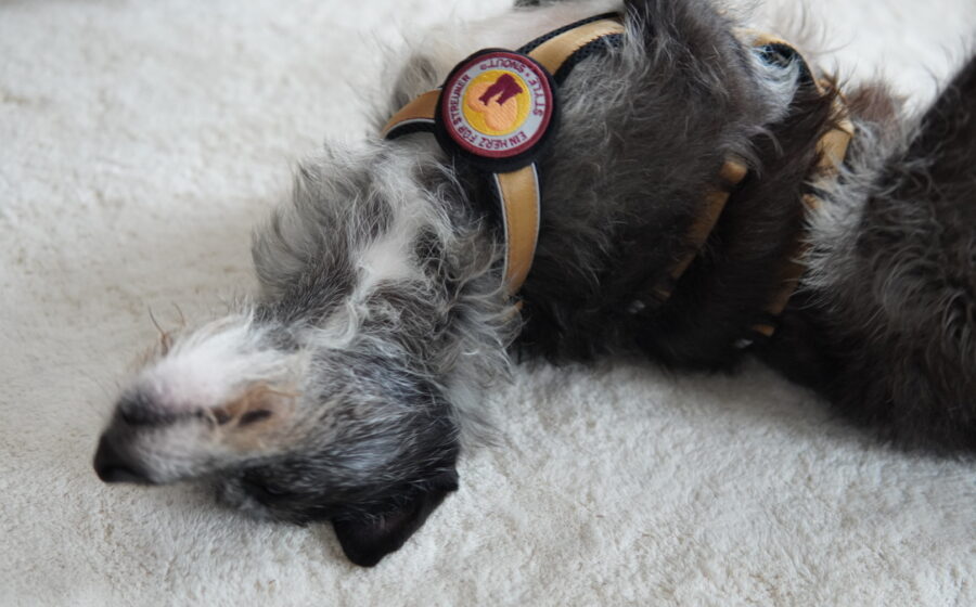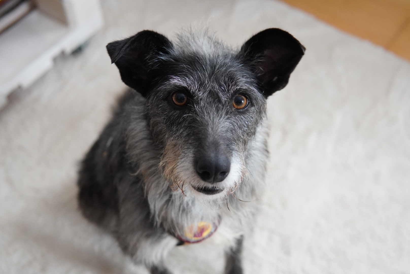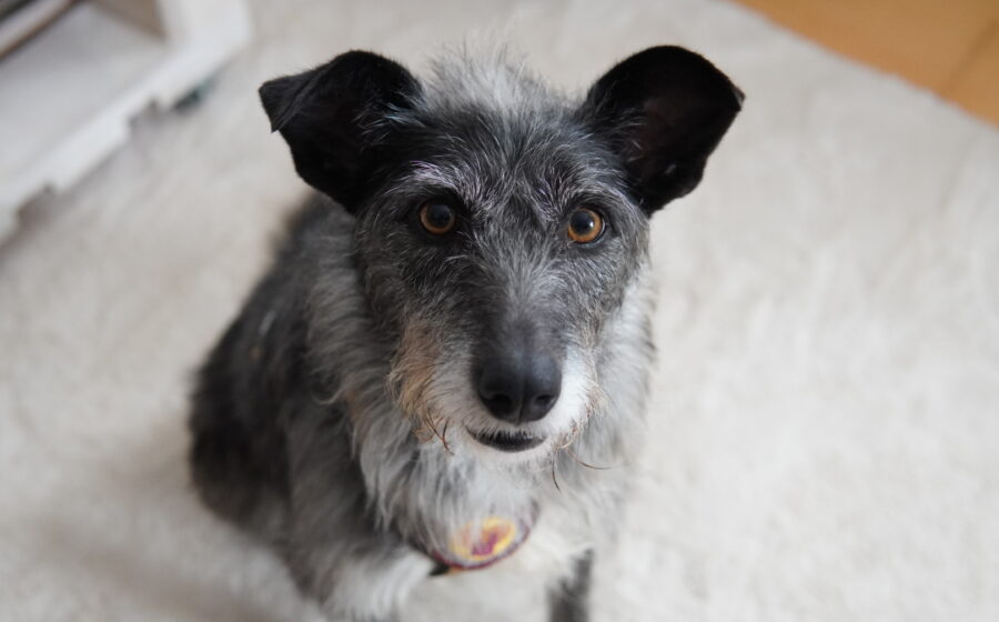 Wanda ist eine ganz besondere Hündin, die mit ihren strahlenden, eulenartigen Augen sofort alle Blicke auf sich zieht. Ihr frecher Streunerlook mit dem weichen grauen Fell, den tiefschwarzen abstehenden Ohren und den weißen Pfoten macht sie einfach unwiderstehlich charmant.