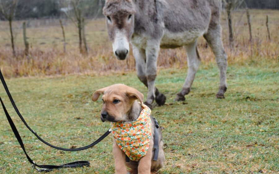 Mit Hunden versteht er sich wunderbar – er ist der sanfte Teddybär, der niemandem etwas zuleide tut. Katzen kennt er noch nicht. Menschen liebt er, auch wenn er manchmal noch ein kleines bisschen abwartend schaut, bevor er sich traut, loszutapsern.