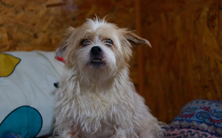 Wolke ist inzwischen etwa 10,5 Jahre alt und weiterhin auf der Suche nach einem passenden Platz, an dem er seinen Lebensabend in Ruhe und Würde verbringen darf. Er ist ein kleiner, weiß-brauner Rüde mit strubbeligem Fell, ca. 35 cm Schulterhöhe, und einem Blick, der viel von seinem bewegten Leben erzählt.