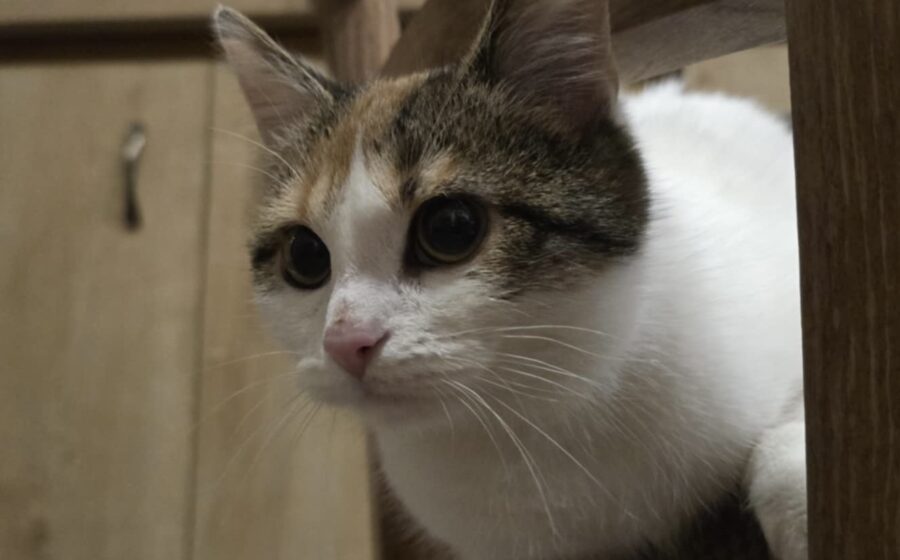 Yukina wurde draußen in der Kälte gefunden, allein auf der Suche nach einem sicheren Ort. Sie kam sofort ins Warme und fügte sich von Anfang an problemlos in die bestehende Katzengruppe ein.